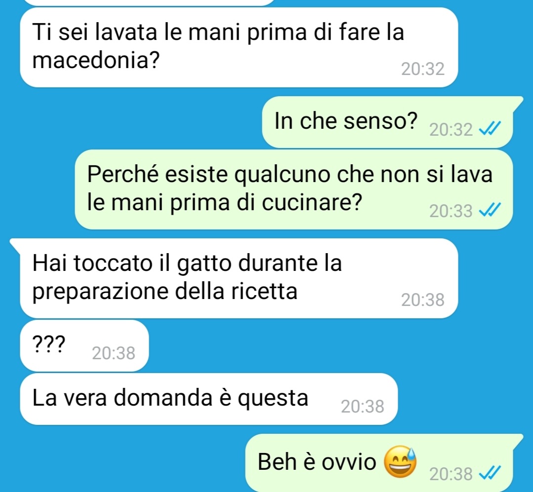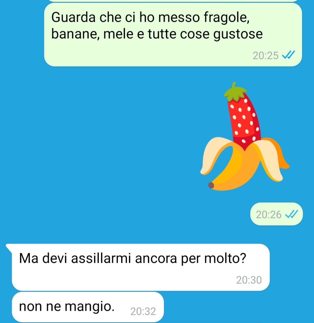 Al contrario, la reazione del ragazzo è stata tutt’altro che positiva. La nostra follower racconta che lui non solo si è rifiutato di assaggiare la macedonia, ma ha anche fornito una giustificazione che l’ha lasciata completamente senza parole. A suo dire, la motivazione è stata talmente assurda da non poter essere riportata chiaramente, lasciando che siano i lettori di Commenti Memorabili a immaginare quale scusa improbabile possa aver inventato.
