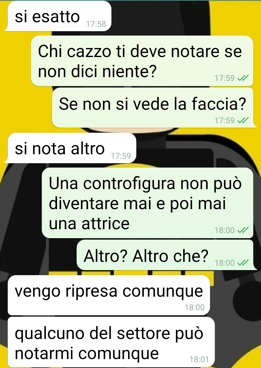 Il nostro fan si mostra preoccupato soprattutto per il fatto che Michela non sembrerebbe percepire la differenza tra aspettative e realtà. Racconta di averle esposto ciò che ha scoperto, ma di non aver ottenuto la reazione che si aspettava. La chat che ha deciso di condividere documenta proprio questo confronto, in cui emergono visioni opposte sul futuro e sul valore delle opportunità ricevute dalla nostra fan.