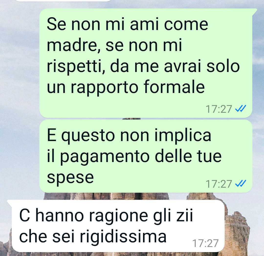 Dopo aver riflettuto, la nostra amica ha deciso di seguire il proprio istinto. Spiega di aver detto al figlio parole che custodiva dentro da tempo, esprimendo con sincerità ciò che sentiva. Ammette di non sapere se un giorno si pentirà di aver parlato in modo così diretto, ma in quel momento ha sentito il bisogno di farlo.