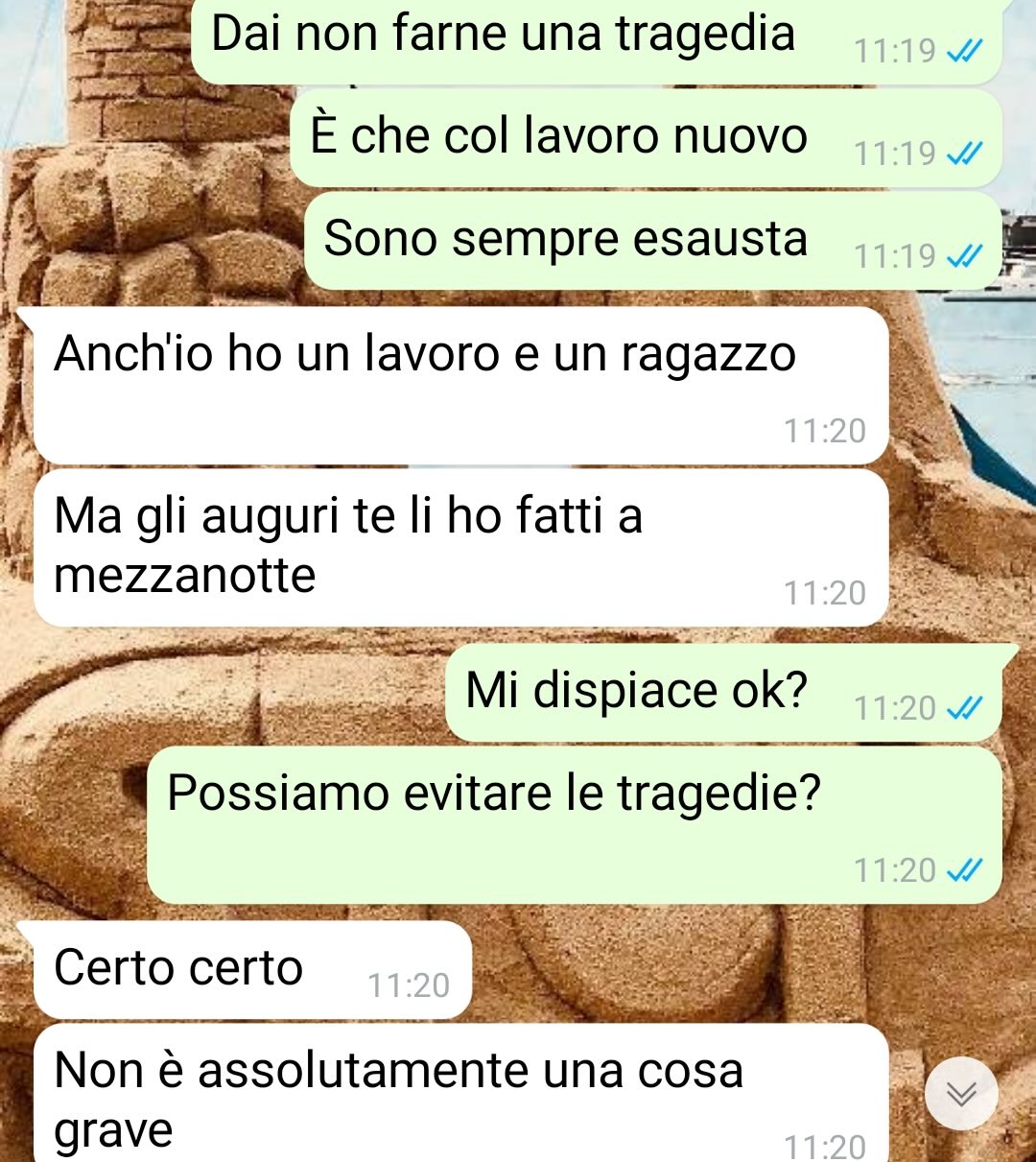 Salve, parto dicendo che mi sono ritrovata in una situazione veramente sgradevole con la mia migliore amica, Miriam, che conosco da tantissimi anni, ma che si è comportata veramente da… non voglio dirlo, non voglio essere volgare, ma potete capire. Diciamo che io pure potevo comportarmi meglio forse, ma dal canto mio non penso di aver fatto nulla di così grave da meritarmi un simile trattamento. Semplicemente io sono cresciuta e lei non è riuscita ad accettarlo. Mi chiamo Chiara e da pochi mesi ho un lavoro, il primo, e un fidanzato che si chiama Giulio con il quale sto benissimo. Ovviamente essendo arrivate entrambe le cose nello stesso momento, molto del mio tempo che prima era libero e lo dedicavo alle mie conoscenze è andato sfumando. Lei questa cosa non l’ha ben digerita e l’ho capito quando il giorno del suo compleanno ha iniziato a lamentarsi in modo molto insistente che non le avevo fatto gli auguri a mezzanotte, ma dopo solo qualche ora. Certo, però non mi aspettavo che si sarebbe voluta vendicare in un modo tanto subdolo e assurdo.