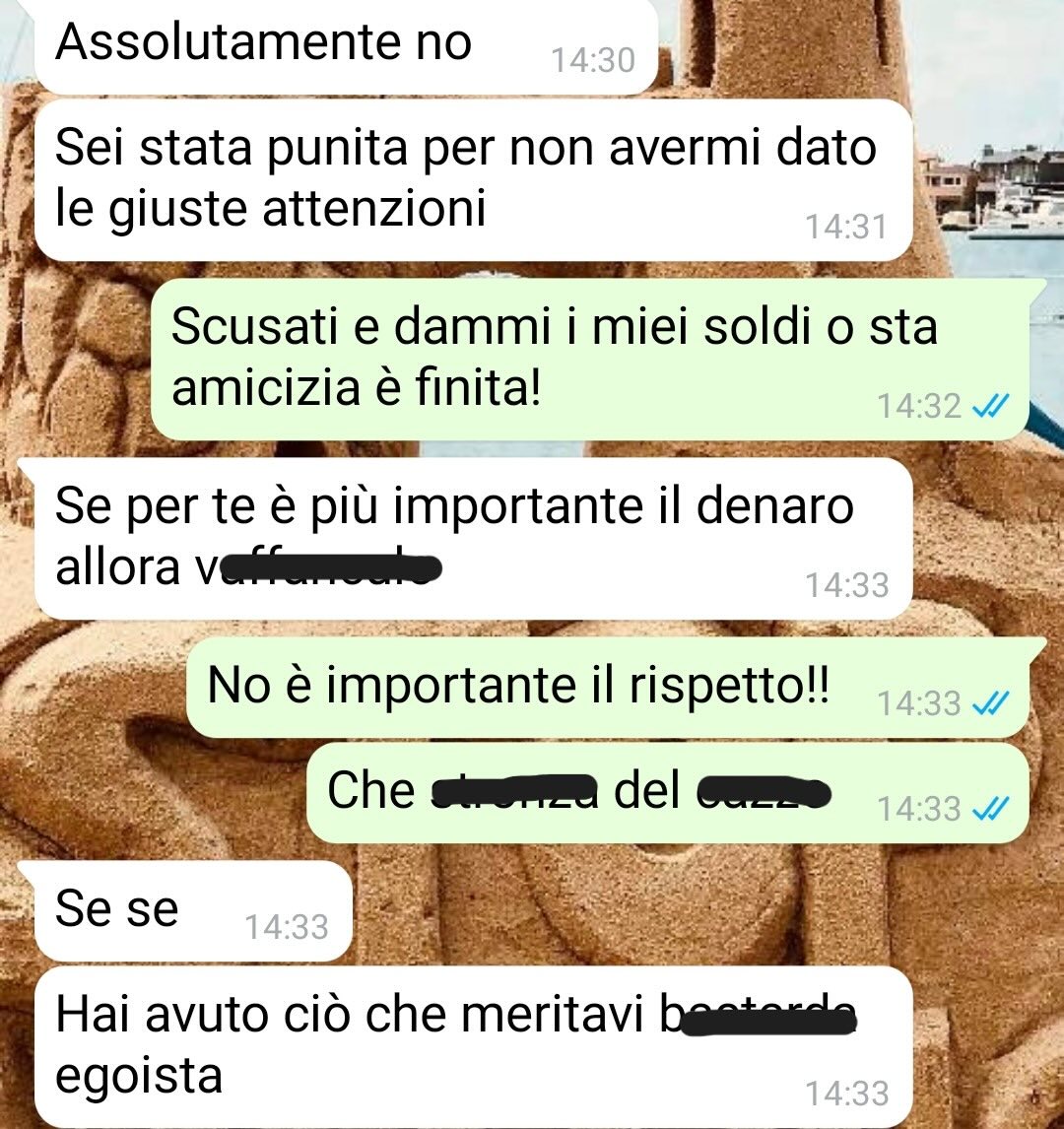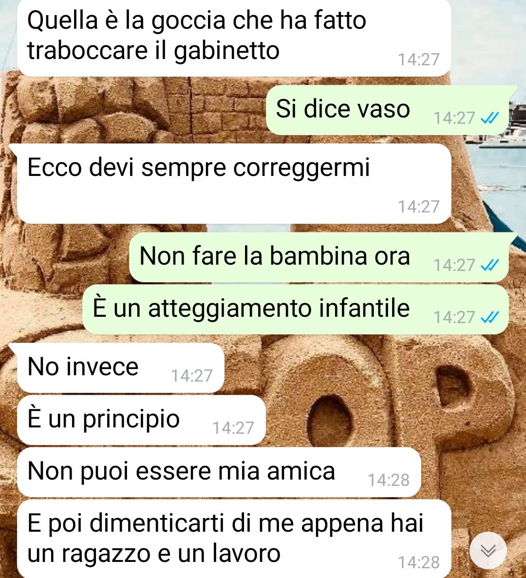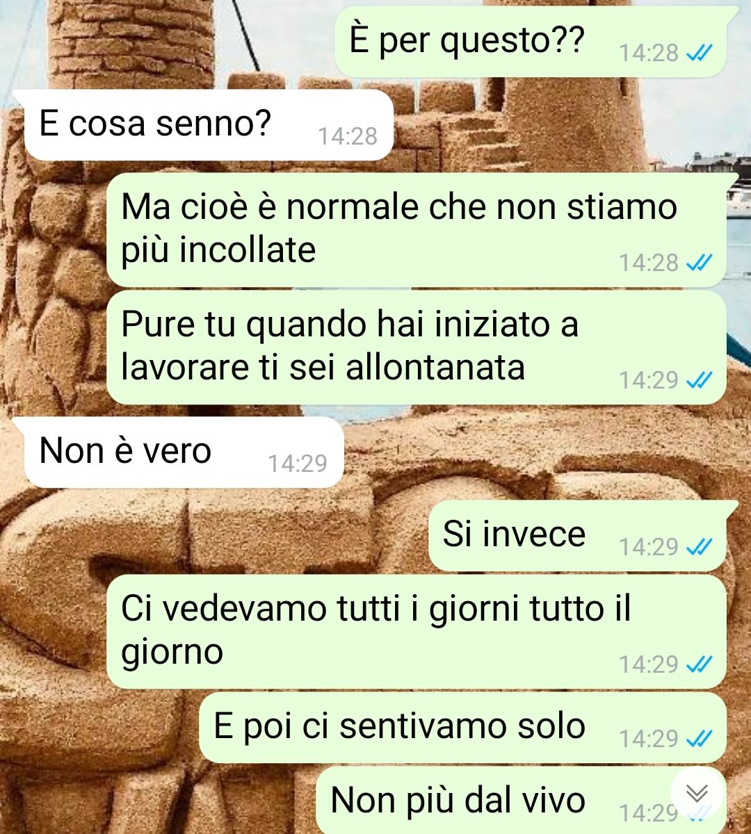 Chiara ammette che forse avrebbe potuto gestire meglio alcune situazioni, ma non crede che un ritardo di qualche ora per un augurio giustifichi un simile atteggiamento. Ha voluto inviare questa chat a Commenti Memorabili per raccontare cosa succede quando un’amicizia, messa alla prova dalla crescita personale e dai cambiamenti della vita, si trasforma in una dinamica tossica fatta di accuse, rancori e vendette inaspettate.