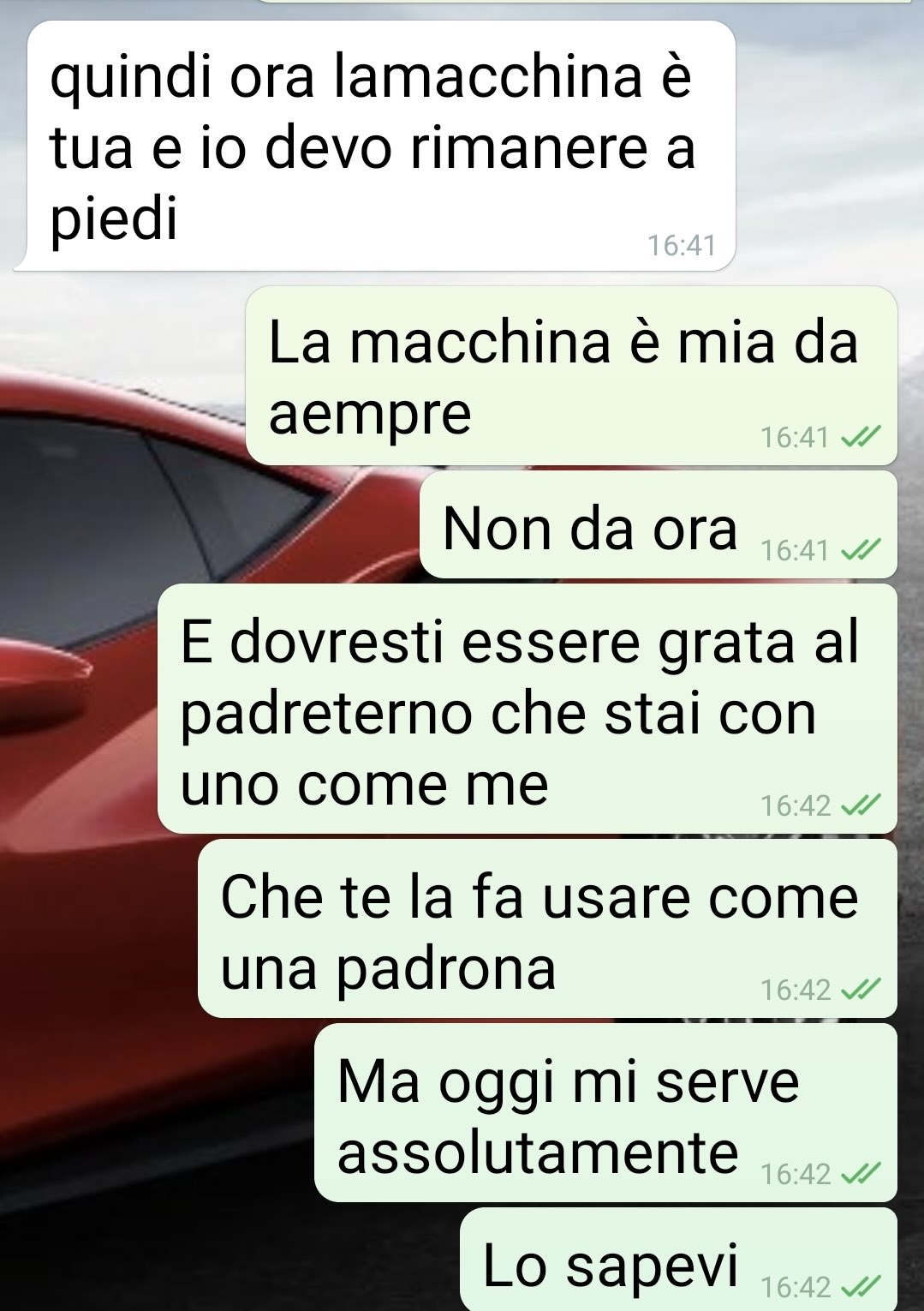 Il nostro fan ha voluto sfogarsi con Commenti Memorabili a seguito di una discussione particolarmente accesa avuta con la propria fidanzata, il cui oggetto è stato – come lui stesso sottolinea più volte – l’utilizzo della sua macchina personale.