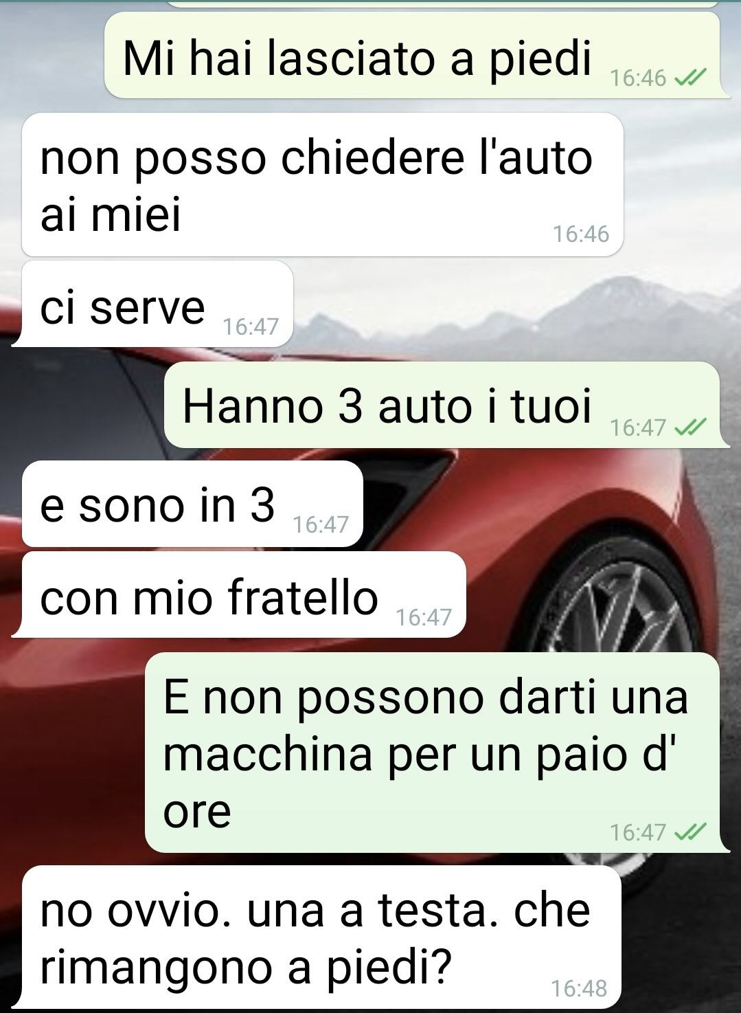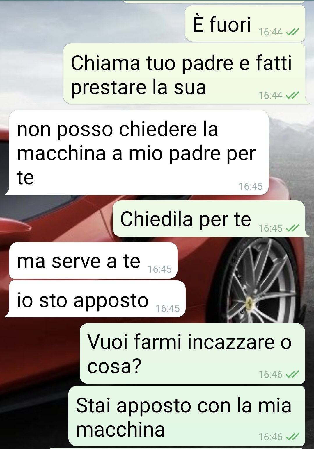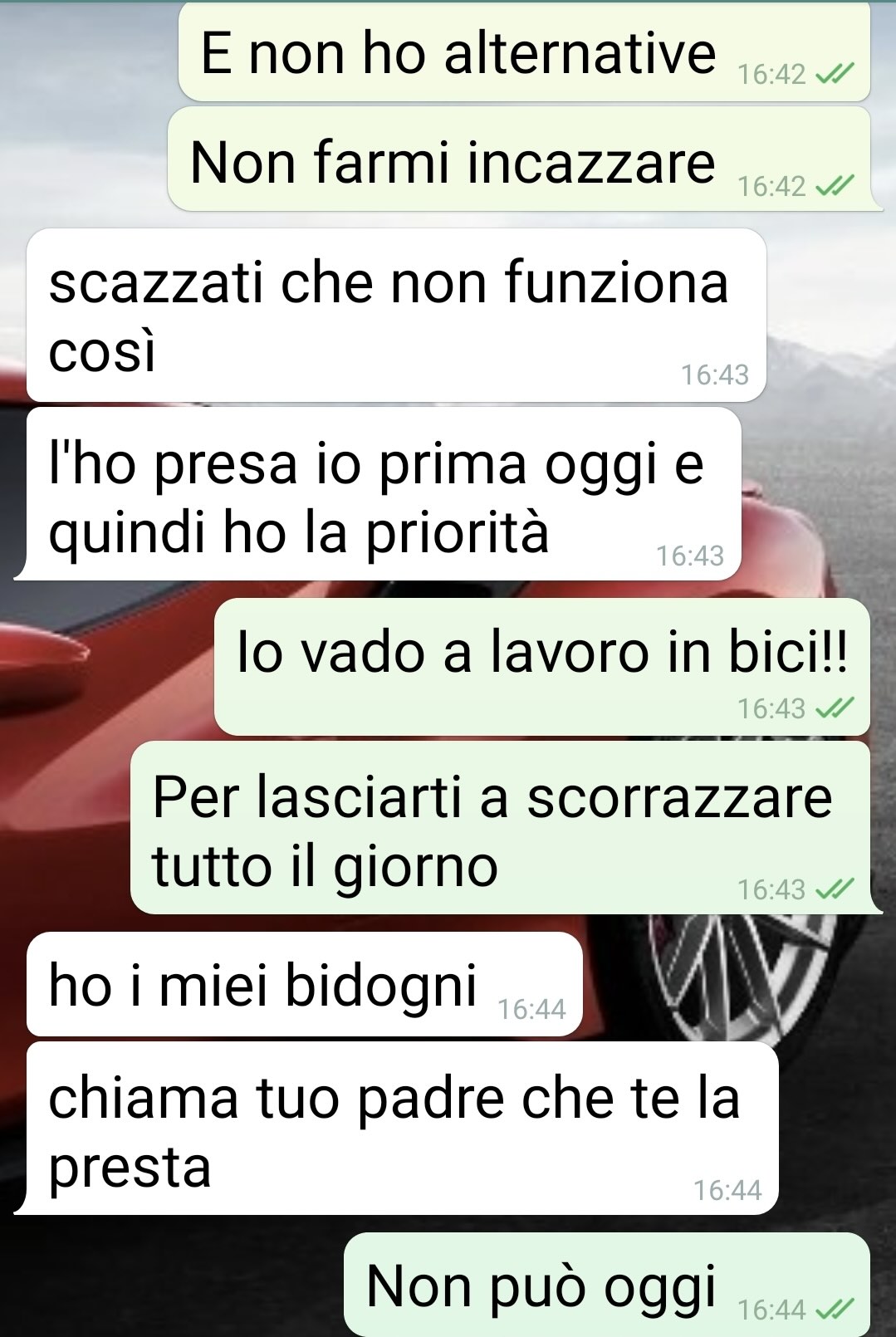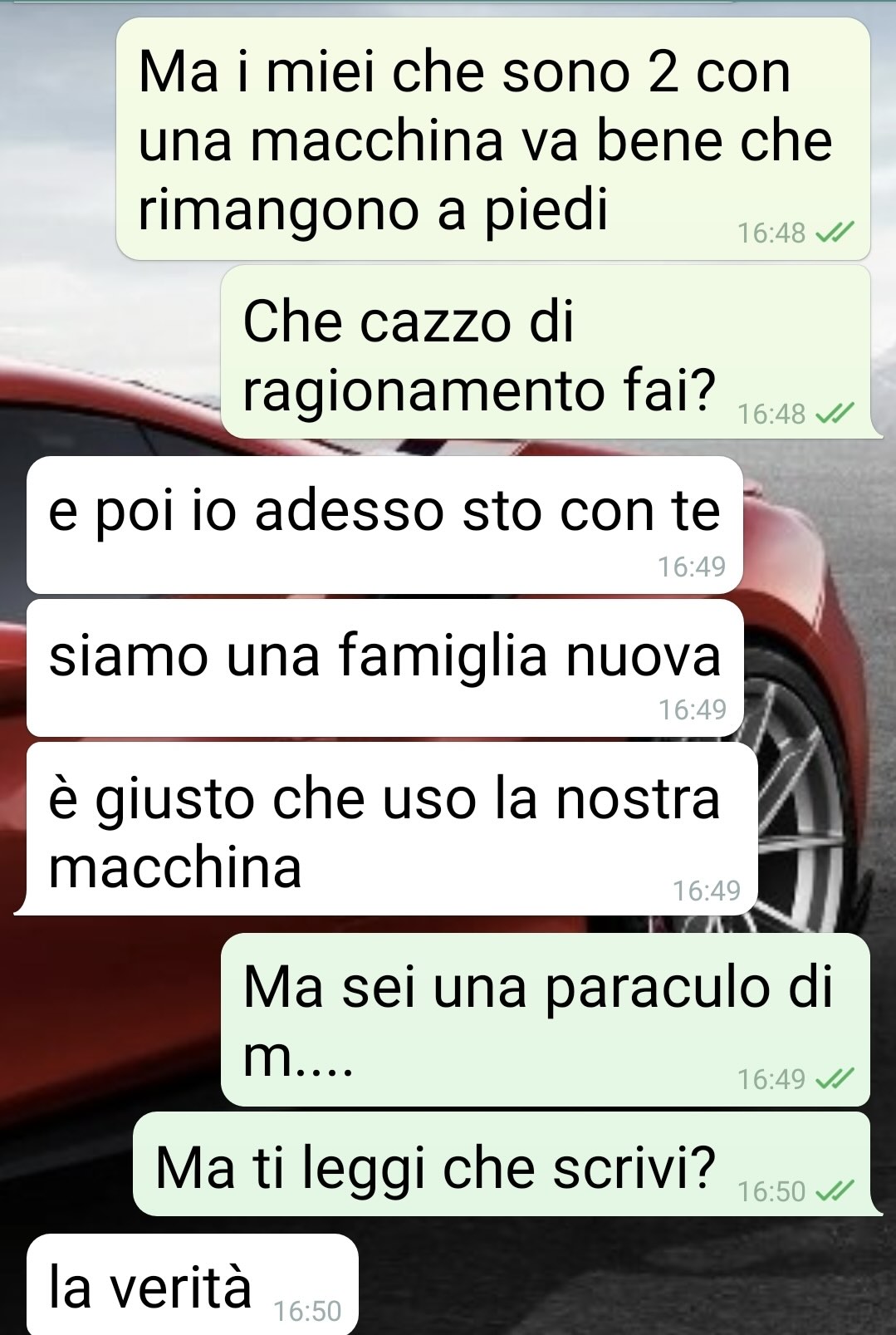 La situazione che racconta nasce da un accumulo di tensioni. Da quando la fidanzata si è trasferita da lui, ha cominciato a usare la sua auto con una frequenza tale da farlo sentire escluso dal possesso e dall’utilizzo del veicolo stesso. Il nostro follower si lamenta del fatto di dover “elemosinare” ciò che gli appartiene e racconta di essersi sentito esasperato al punto da affrontare apertamente l’argomento.
