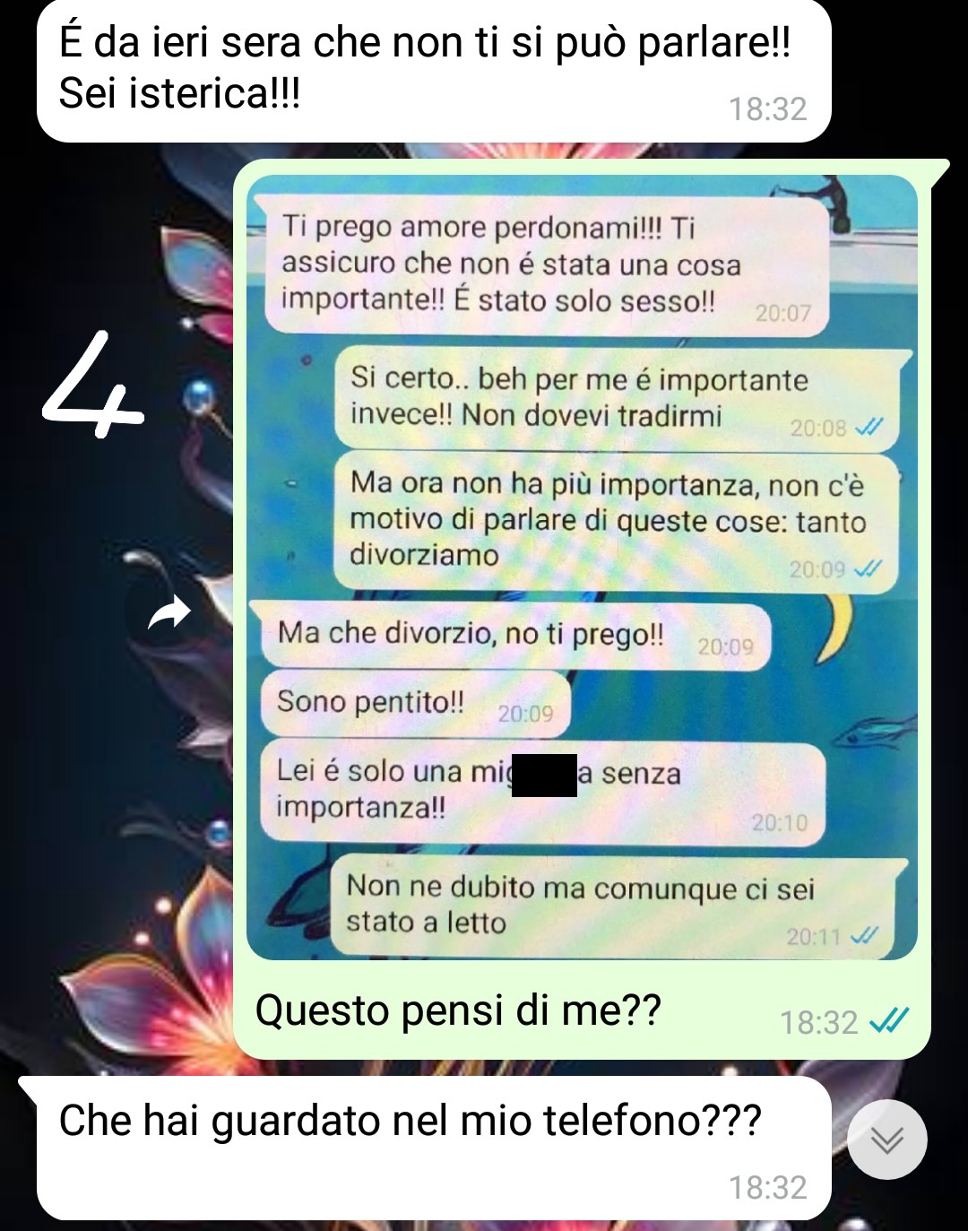 Sono passata in pochissimo da una grande felicità alla profonda tristezza.. non immaginavo che sarebbe finita così, credevo che davvero tutto stesse andando per il meglio.. Vi racconto la mia storia. Mi chiamo Chiara e ho da circa un anno una relazione con Michele. Ci siamo conosciuti a lavoro, lui era uno dei miei capi.. e che vi devo dire è scoppiata la scintilla e ci siamo fatti travolgere! Ora noi ci siamo innamorati davvero: ci amavamo tantissimo e io davvero immaginavo che ci saremmo sposati a breve tanto la nostra storia andava bene!! C’era solo un problema: lui è sposato. E lo so che non avrei dovuto mettermi insieme a uno sposato ma che vi devo dire.. è successo! Poi davvero noi stavamo molto bene!! Comunque tutto andava bene e io iniziavo anche a stufarmi delle amiche che mi dicevano cose come “non fidarti, non lascerà mai sua moglie”.. io pensavo che fosse tutta invidia perché noi ci amavamo molto e eravamo una coppia bellissima!! Certo che dopo un anno mi aspettavo che qualcosa cambiasse.. e alla fine è cambiato qualcosa!! Cioè la moglie ha scoperto di me e così lui è andato via di casa e dato che è estate non aveva un posto dove stare è venuto da me! Siamo stati insieme da me per alcune settimane e poi…