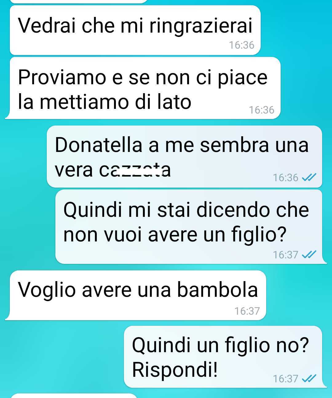 Il contrasto tra i due emerge con forza nel momento in cui Donatella introduce nella conversazione una proposta che lascia il nostro fan senza parole: acquistare una bambola reborn, cioè una di quelle bambole iperrealistiche create per somigliare in modo impressionante a un neonato vero.