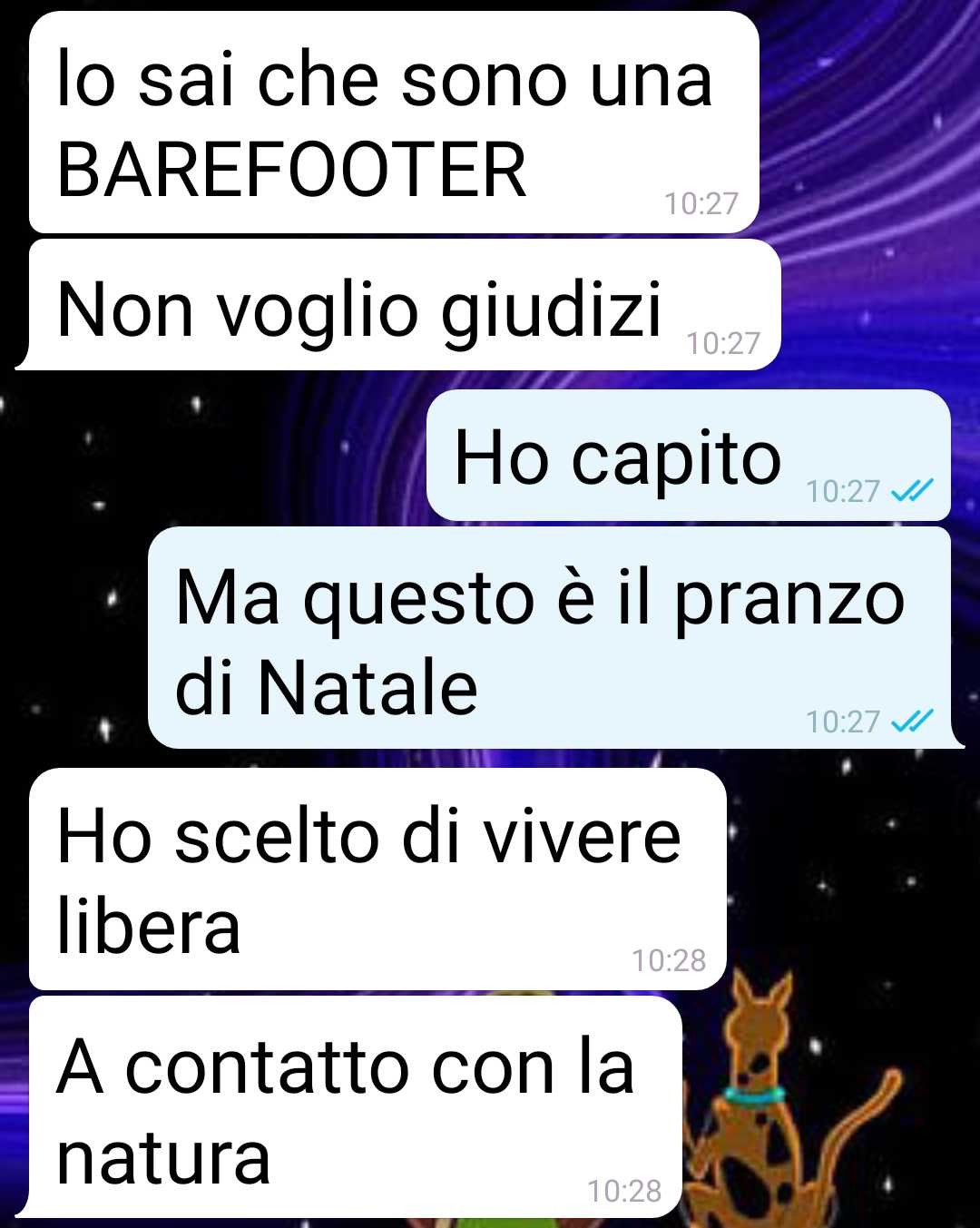 La mia fidanzata per Natale verrà dai miei SENZA SCARPE! Perché? È una barefoot… Cose strane del mondo e dove trovarle. Sto con Laura da alcuni mesi. La mia ragazza ha abbracciato un movimento di strambi che non indossano le scarpe e vanno in giro scalzi. A casa sua lei sta sempre senza scarpe e fin qui. Poi qualche volta in estate usciva con le scarpe per poi toglierle a un certo punto quando eravamo sul marciapiede per esempio. Io la guardavo e pensavo: “Wow che spirito libero! Che figa!”. Ora penso “ma che coglione sono stato?”. Per Natale l’ho invitata a casa mia. Vivo ancora coi miei e mi faceva piacere venisse da noi, dato che lei abita in una casa di studentesse e non è potuta tornare a casa per il costo allucinante dei biglietti aerei. Mi è sembrato quindi ovvio invitarla da me. Ma lei mi ha detto che verrà scalza. Cioè senza scarpe. Coi calzini… Nella mia famiglia mia madre e le mie cugine sono donne abbastanza bon ton, molto eleganti e un po’ stronzette se vogliamo. Io penso che andrà a finire in merda.