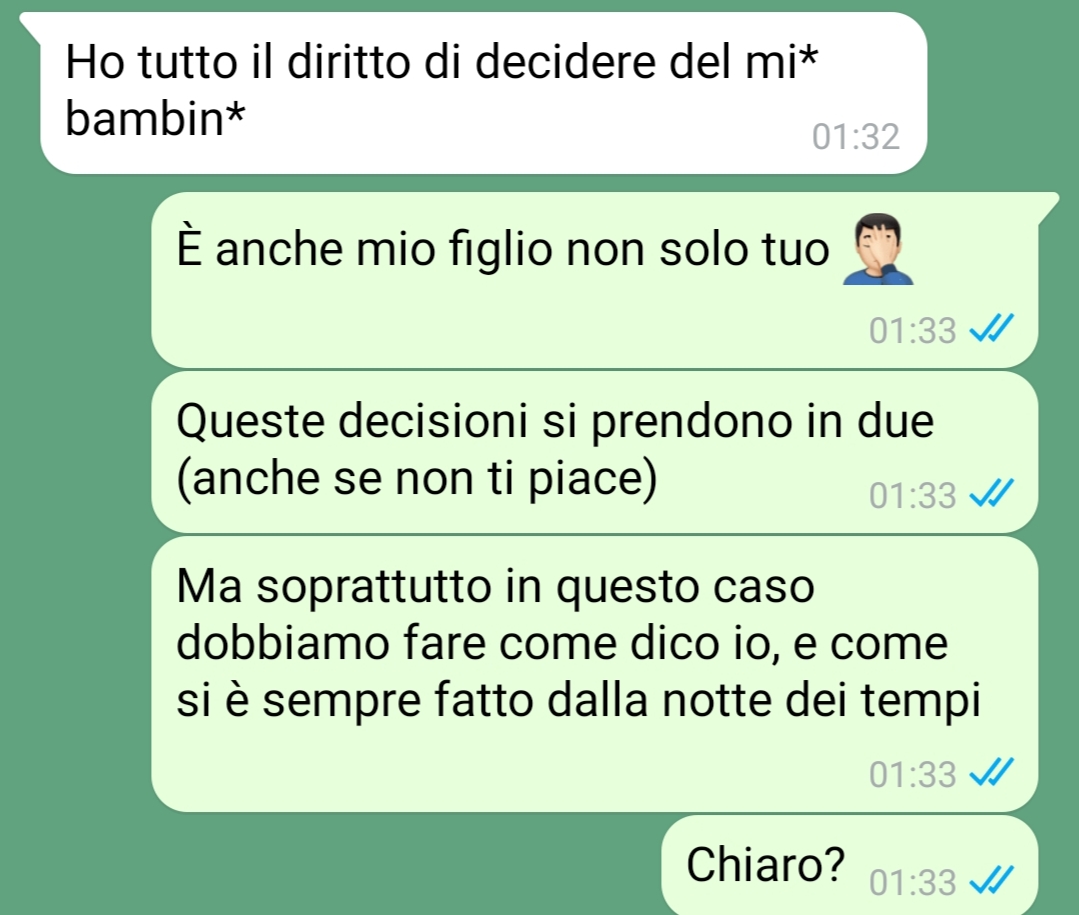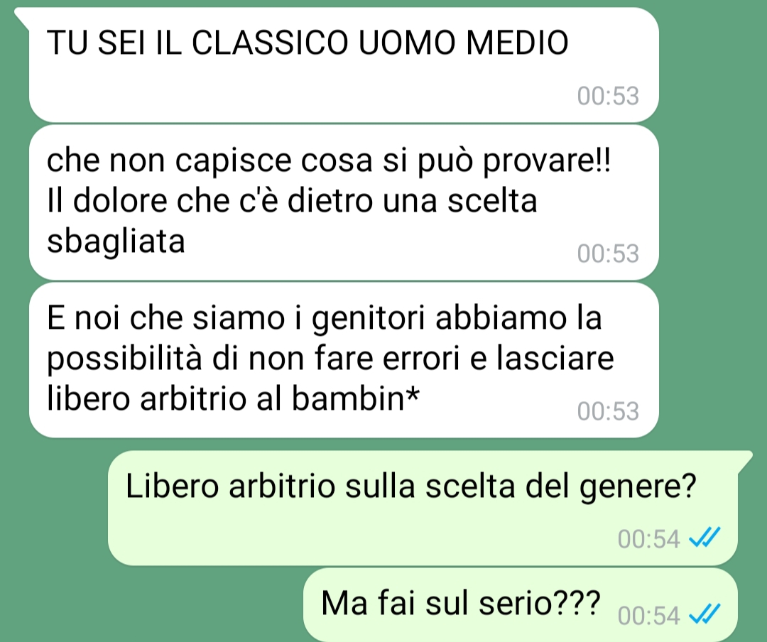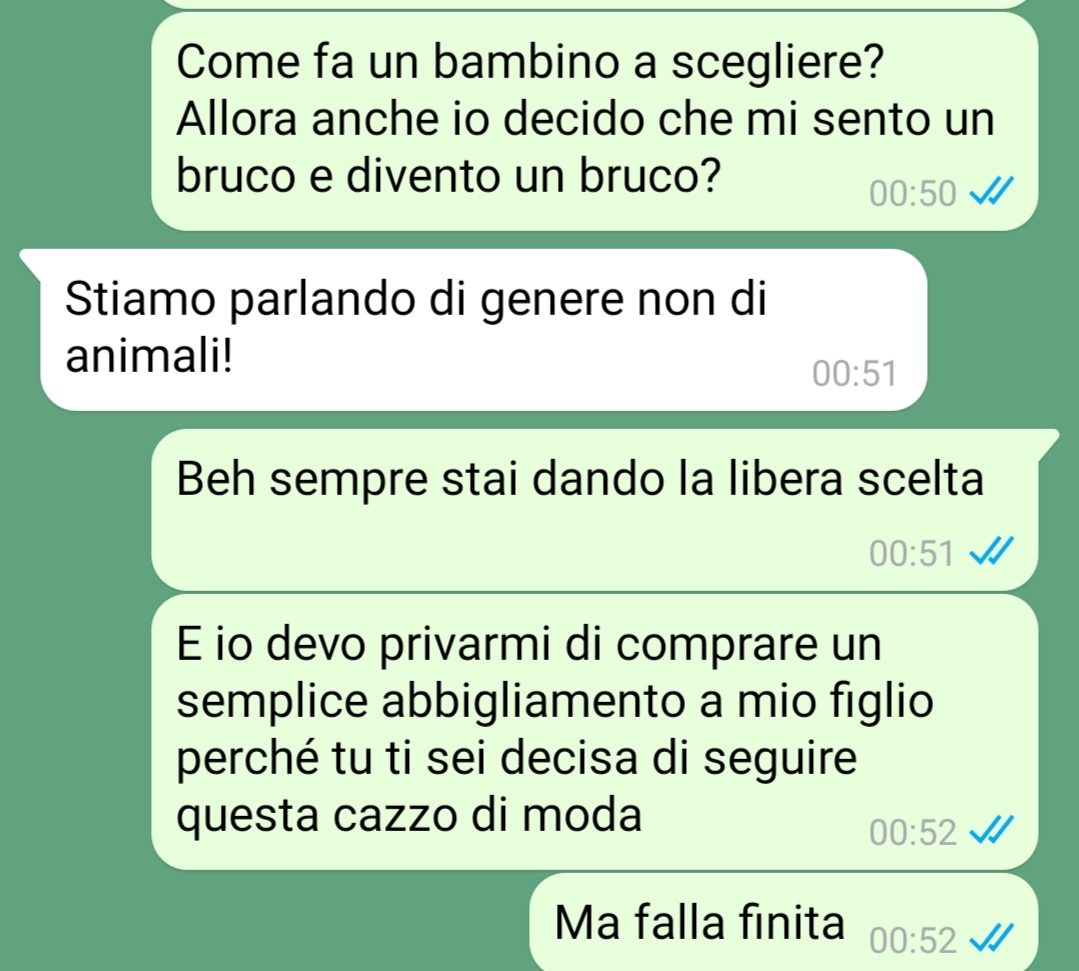 Il nucleo della controversia riguarda l’educazione del loro imminente figlio: la coppia aspetta un bambino maschio e il nostro follower racconta di aver immaginato con entusiasmo la possibilità di trasmettere al figlio la passione per il calcio e altre attività tipicamente associate al mondo maschile. Tuttavia, la moglie avrebbe espresso il desiderio che il bambino cresca in modo «neutro», senza l’attribuzione esplicita di un genere nei ruoli e nelle scelte quotidiane.