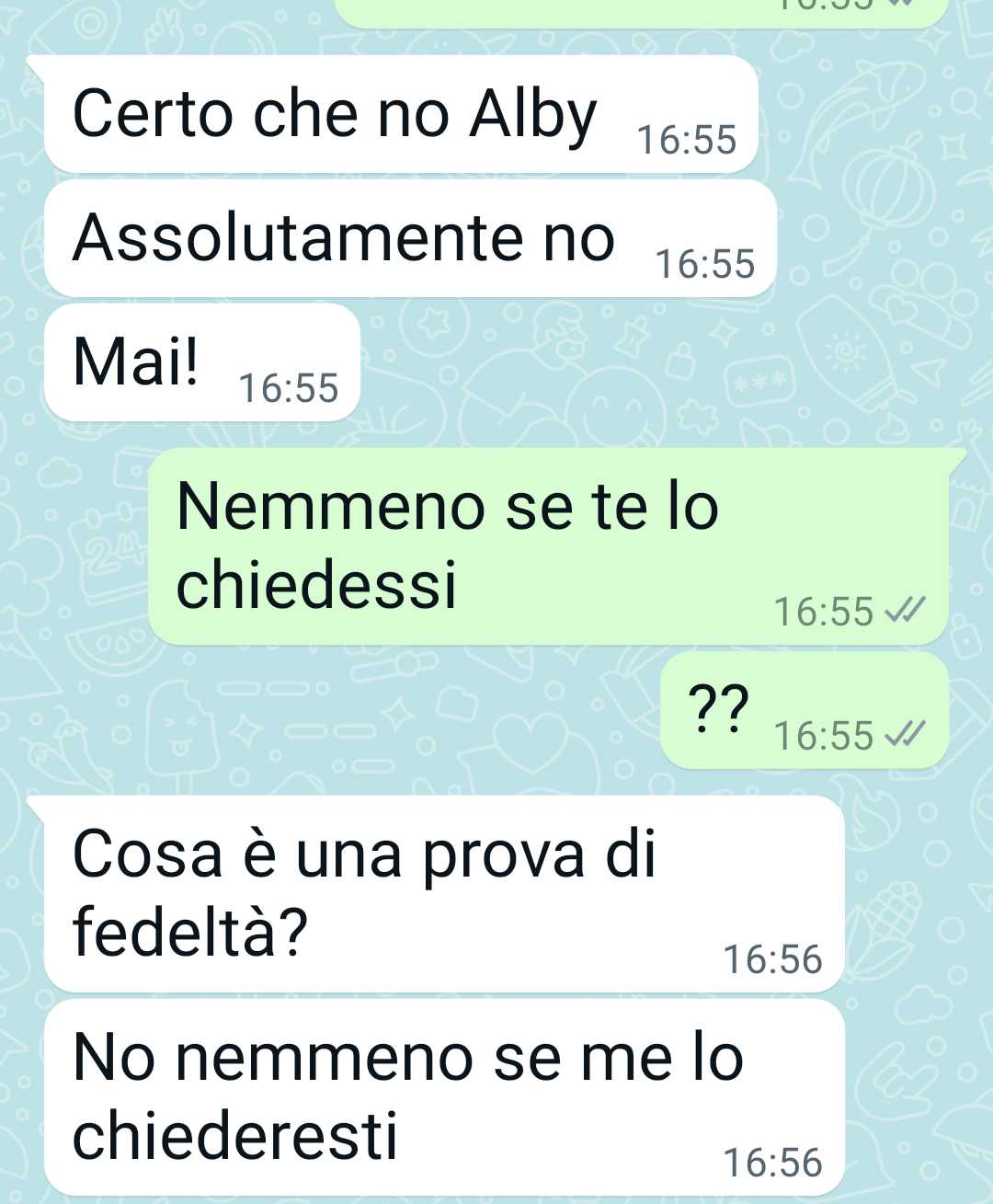 Mi chiamo Alberto e volevo sposare Betta. Prima però le ho fatto un piccolo test. Beh, ha fallito. Prima di sposarmi devo essere certo che la donna che avrò accanto sarà come voglio io. Voglio che mi conosca sin nelle più intime pieghe della mia carne. Voglio che per me lei sia il coltello che fruga nelle mie viscere, che conosce la mia interiorità, che previene, cura, sistema. Non voglio accanto una persona che non mi conosce, che non sa che sono capace di tutto, di tutto davvero. Voglio una donna, l’eterea, la neve, il cristallo, il crisantemo sulla tomba della mia follia. Betta sembrava la donna più adatta a traghettare con me in questa avventura chiamata matrimonio. Sì, perché per me il matrimonio è un’avventura, una bellissima avventura a due, che poi diventa a tre, a quattro, spero io. Ma lei non era lei. La bella, l’eterea, la goccia che fa traboccare il mio vaso, il nettare da cui suggere il miele.