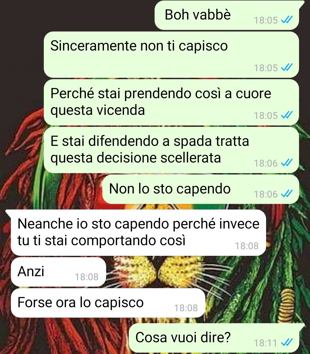 Un ragazzo racconta di una discussione che ha avuto con la sua ragazza, nata inaspettatamente da una questione che lui ritiene del tutto fuori dal normale. La sua reazione alla discussione è stata per lui ancora più sorprendente, tanto da fargli dubitare della sua sanità mentale. Si chiede se altri la pensino come lui, perché altrimenti teme di essere circondato da persone problematiche, compresa la sua ragazza.