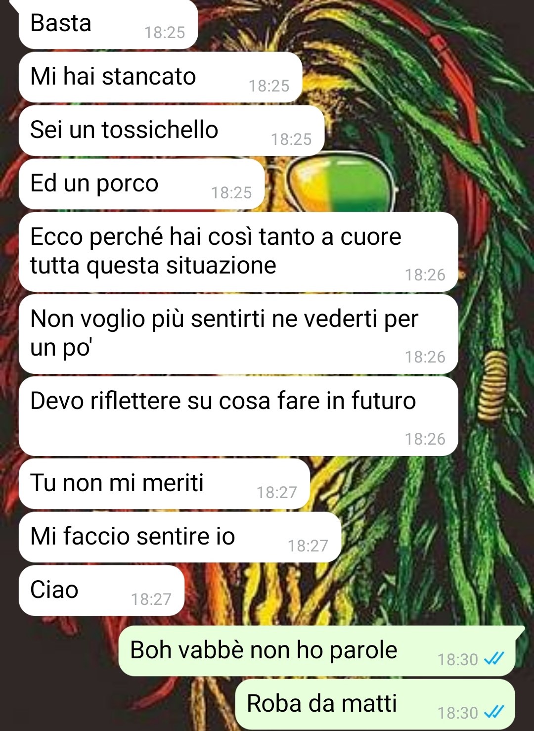 Un ragazzo racconta di una discussione che ha avuto con la sua ragazza, nata inaspettatamente da una questione che lui ritiene del tutto fuori dal normale. La sua reazione alla discussione è stata per lui ancora più sorprendente, tanto da fargli dubitare della sua sanità mentale. Si chiede se altri la pensino come lui, perché altrimenti teme di essere circondato da persone problematiche, compresa la sua ragazza.