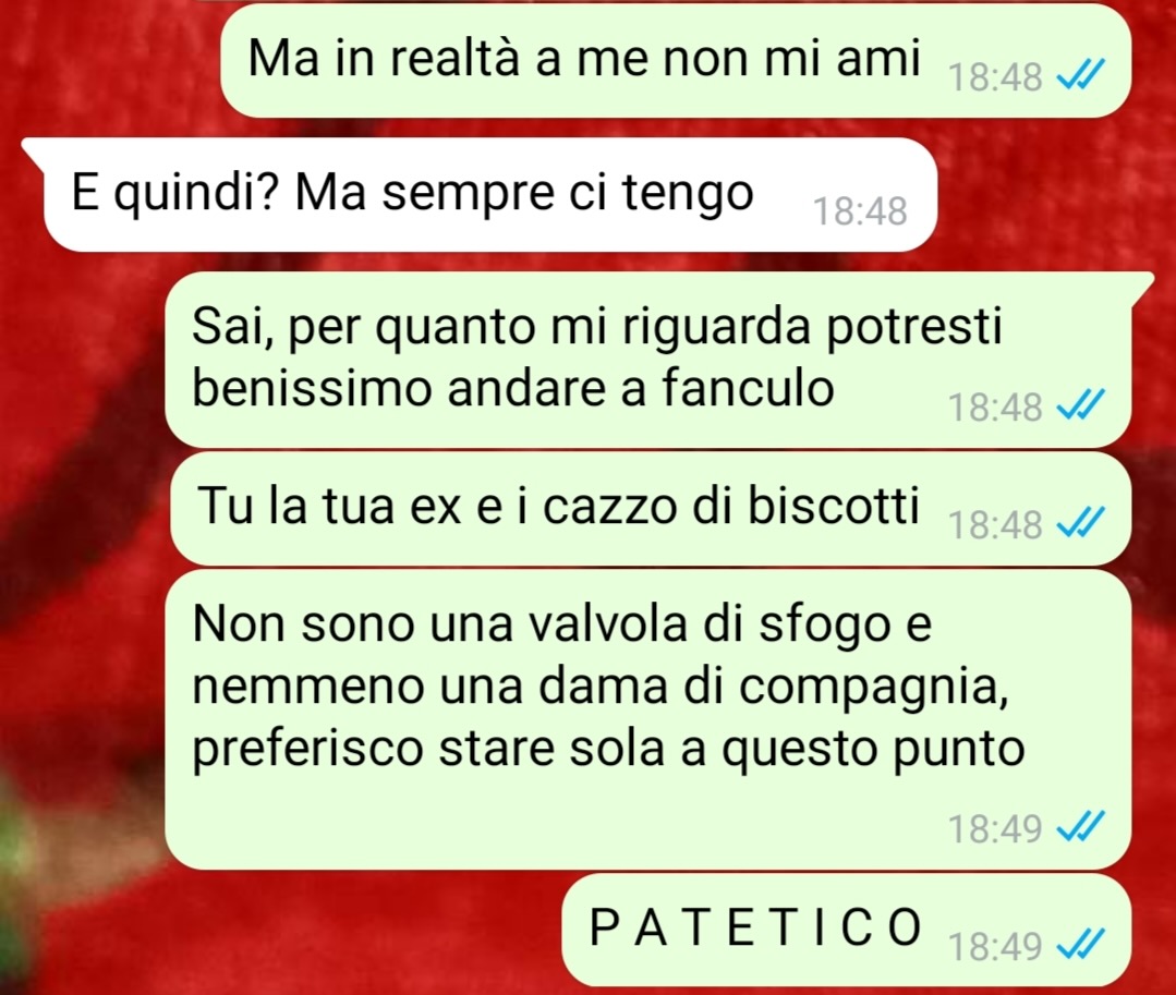 Chiara non entra nei dettagli di cosa abbia scoperto, ma lascia intendere che il comportamento del fidanzato confermi un problema più profondo nella loro relazione. Aggiunge che questa esperienza le ha fatto capire che non bisogna mai accontentarsi di un amore patetico o privo di rispetto. Conclude affermando di aver trovato il coraggio di lasciarlo andare, nonostante il periodo natalizio, scegliendo di dare priorità al proprio valore e al rispetto di sé.