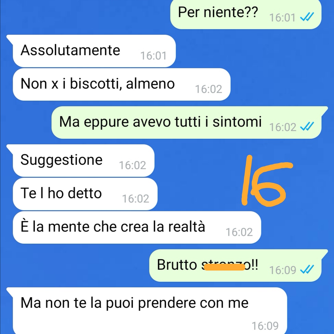 In quel momento, la nostra follower era già piuttosto agitata per via di un impegno importante che l’aspettava nel pomeriggio e che il fratello non conosceva. Confessa che mangiare, soprattutto dolci, l’aiuta a calmare il nervosismo e per questo non si è fermata a un solo biscotto.
