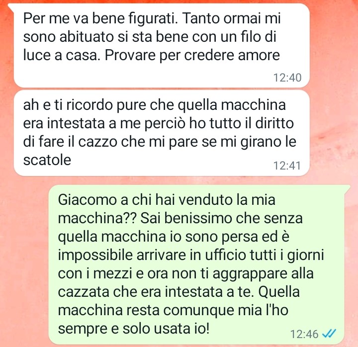 Il tono del suo racconto è carico di delusione e rabbia. Si sente ferita e umiliata, al punto da dichiarare di voler reagire in modo deciso. Laura non cerca di nascondere le proprie responsabilità, ma ciò che desidera comprendere è se il comportamento avuto da Giacomo possa essere considerato giustificabile oppure no, e se davvero meritava un simile trattamento.