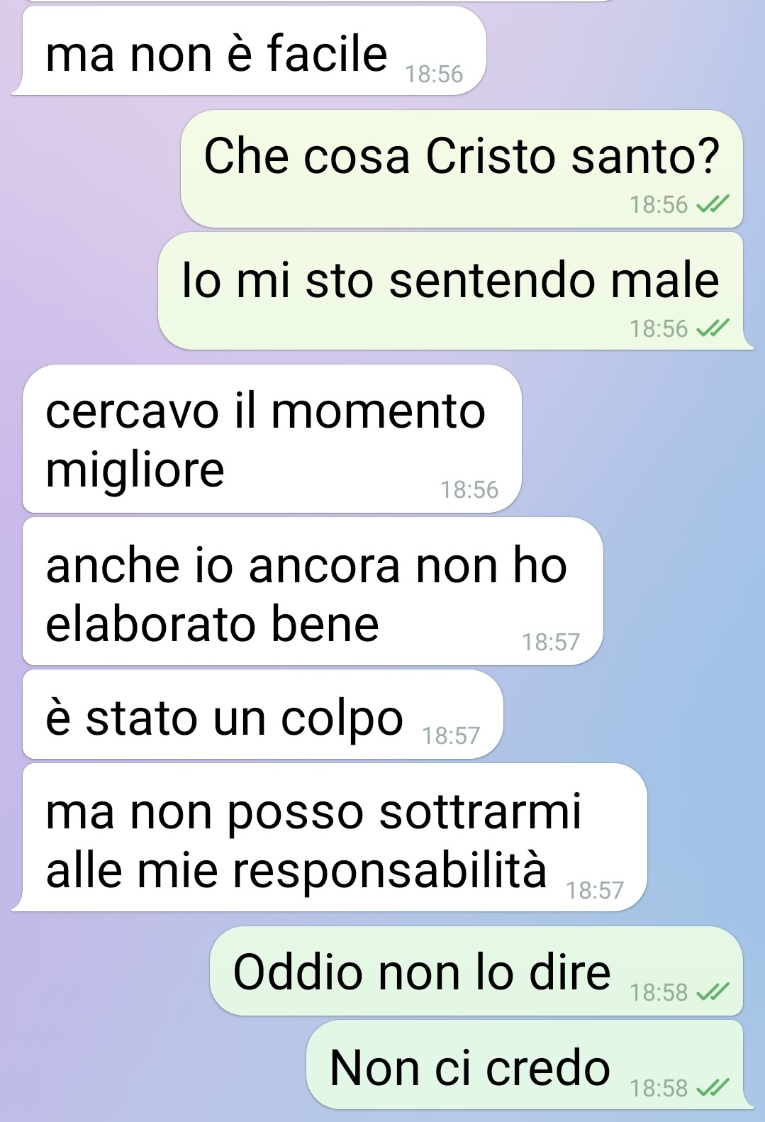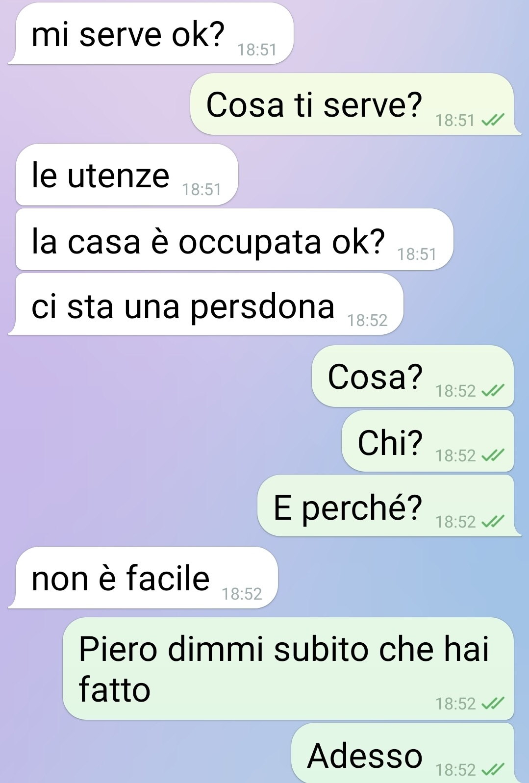 Carmen si sente confusa e tradita, perché Piero non solo rifiuta di collaborare, ma lascia intendere che la sua richiesta non sia legittima, che lei stia esagerando. Non riesce più a capire se sia un problema solo di orgoglio, di abitudine, o se dietro ci sia un disagio più profondo. Non sta bene con questa dinamica, però non sa se insistere, lasciare perdere o prendere misure più drastiche.