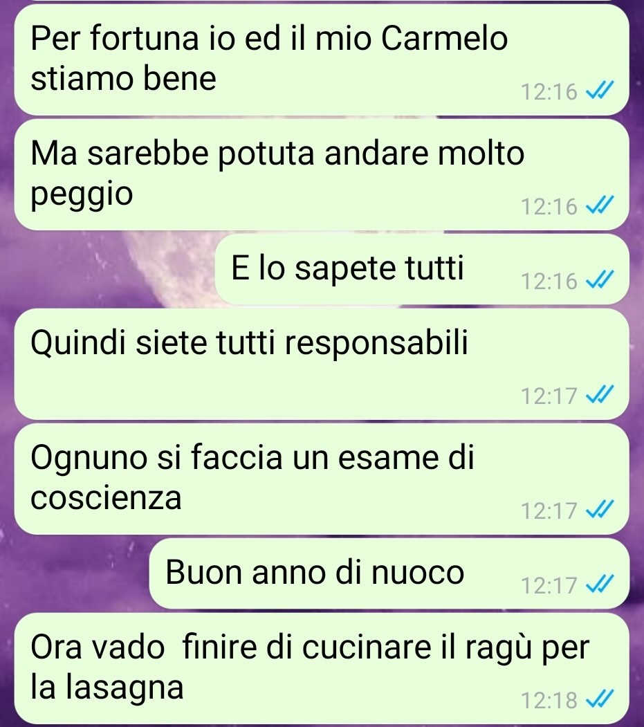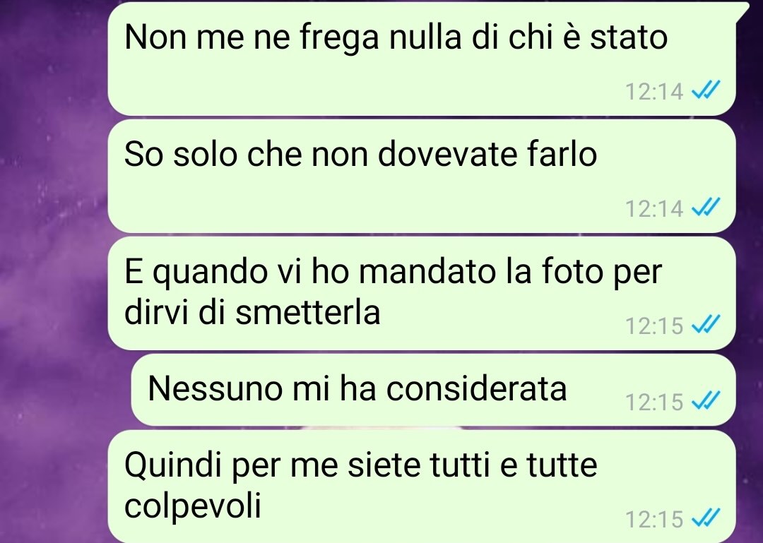 Per la nostra lettrice, non c’è nulla di divertente in tutto ciò. Ha vissuto l’episodio con ansia e preoccupazione, e non tollera che i vicini non solo non si assumano le loro responsabilità, ma non mostrino nemmeno un briciolo di solidarietà. Di seguito la conversazione che ha deciso di rendere pubblica, per mostrare l’assurdità della situazione e la mancanza di rispetto nei confronti di chi, come lei, chiede solo un po’ di tranquillità.