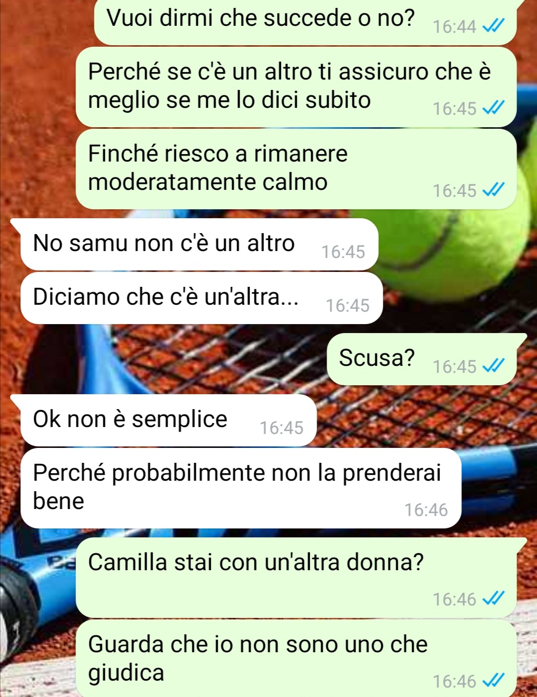 Samuele inizia spiegando che, nonostante non si consideri particolarmente eccezionale in molti aspetti, crede fermamente nella sincerità come fondamento dei rapporti interpersonali. Questo valore ha assunto un’importanza centrale nella sua recente disavventura con Camilla. Dopo aver instaurato una relazione che, a suo dire, lo aveva coinvolto emotivamente più del solito, Samuele ha scoperto che lei gli aveva celato informazioni cruciali sulla sua vita. Questa rivelazione ha portato a una rottura immediata della loro relazione.