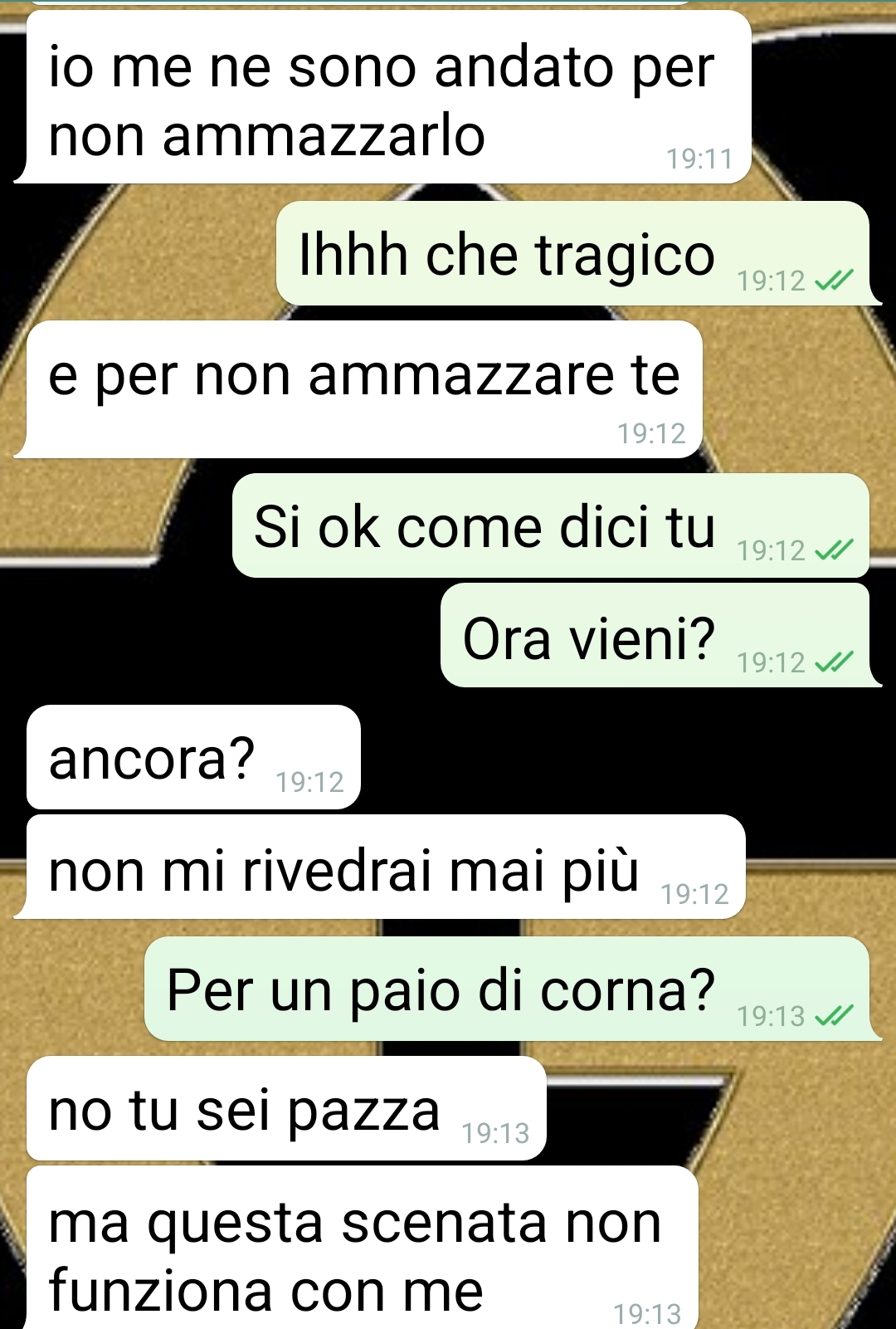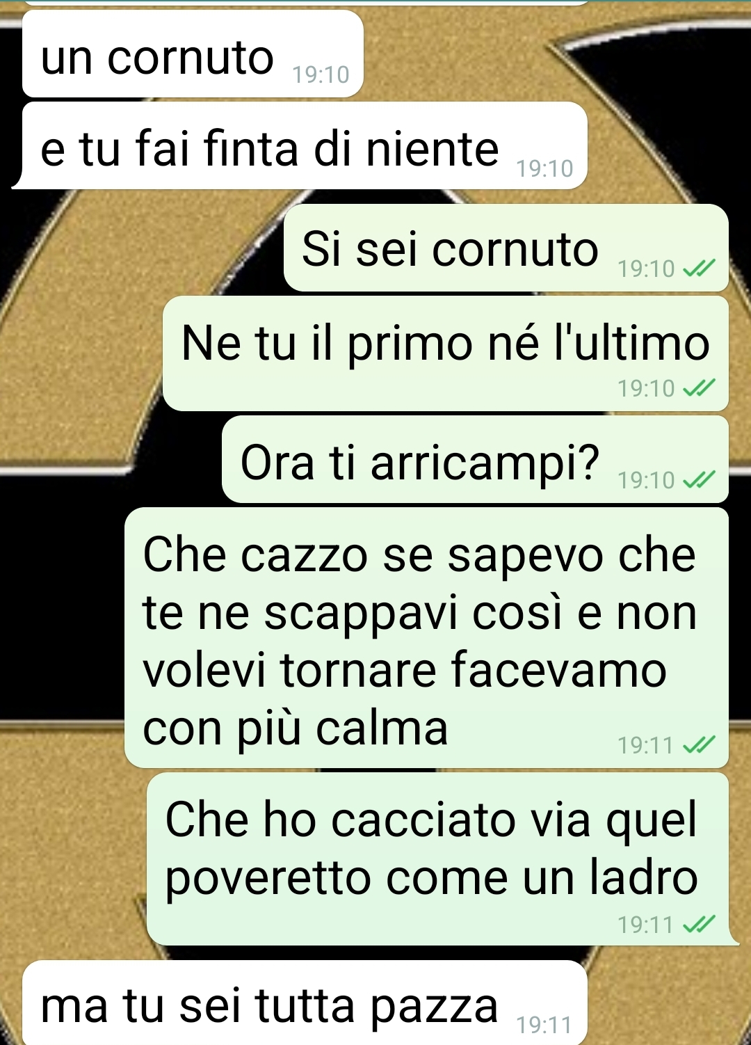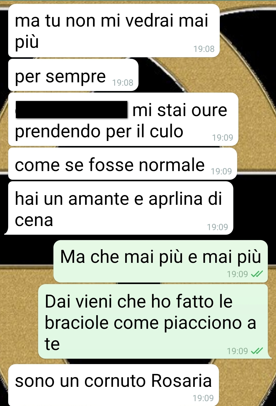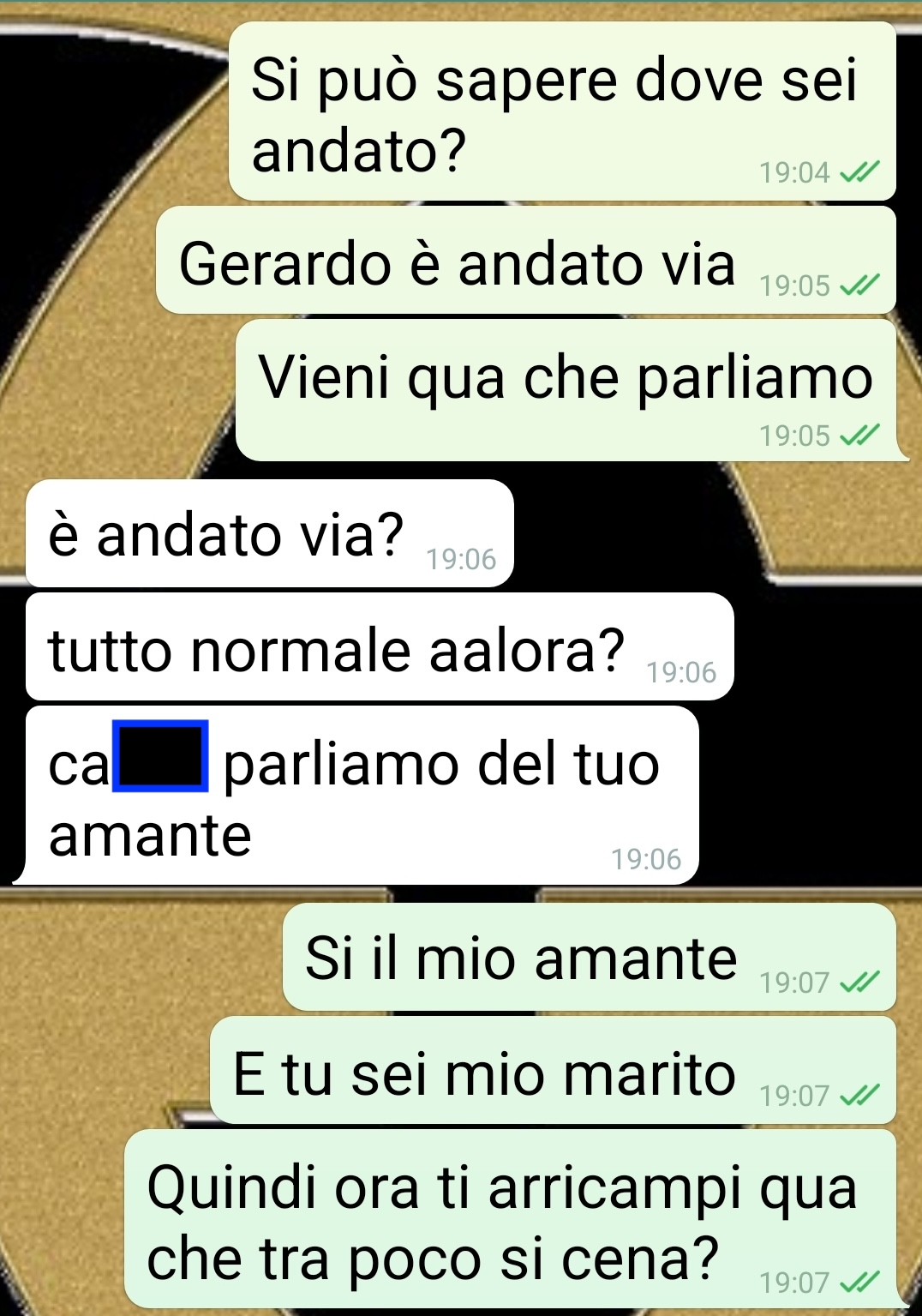 Mio marito è scappato di casa, per non fare pazzie dice lui, quando mi ha trovato a letto con l’amante. Come se io non avessi un buon motivo. Io sono Rosaria e vi voglio fare leggere sta discussione che ho avuto con mio marito. Questo stupido non mi rispondeva alle chiamate e ho dovuto fare tutto per iscritto. Meglio che ora ce lo godiamo tutti. Perché ragazzuoli miei a volte sti mariti sono davvero … come dire? Diciamo distratti va’. E poi quando ci sbattono sopra alle cose che hanno avuto sempre sotto il naso fanno tutti i sorpresi, gli offesi, gli schifati. Il mio qua voleva pure ragione, si è messo a straparlare, faccio questo faccio quello. Ci vuole calma e un po’ di buonsenso. Come se non mi conoscesse. Lo amo alla follia. Sono 5 anni che lo amo e lo curo. E invece di cercare il motivo per cui passo il tempo con Gerardo si incazza. Come se adesso io gli metto le corna tanto per passatempo. Mah. Ma con l’ “amore”, quello vero, tutto si sistema.