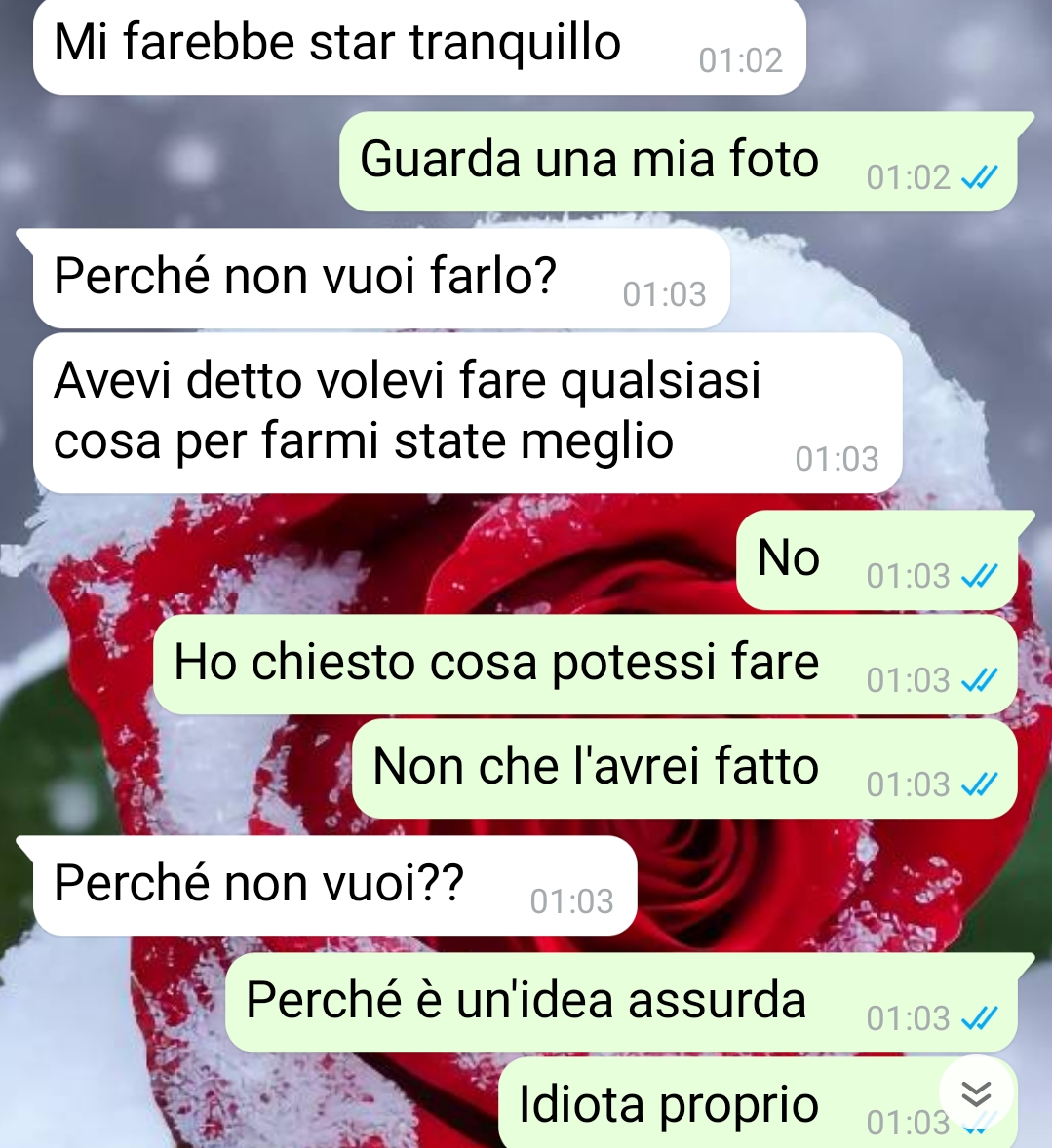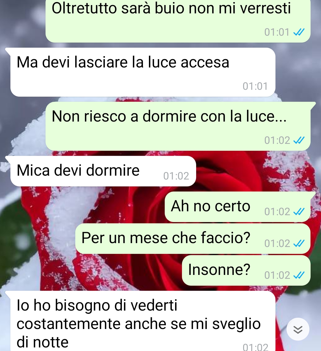 Il follower racconta che spesso le persone facevano notare come lei sembrasse il ragazzo della coppia e lui la ragazza, anche se Teresa precisa che era esattamente il contrario. Andrea infatti aveva l’abitudine di utilizzare cuoricini ed emoji nei messaggi, scrivendo cose romantiche o un po’ sceme, mentre lei comunicava in modo più normale. Questo lato dolce e smielato del ragazzo inizialmente le piaceva molto e rappresentava una delle caratteristiche che più apprezzava di lui. La situazione tuttavia inizia a cambiare quando Teresa si trova costretta a trasferirsi temporaneamente più vicina alla sua famiglia.