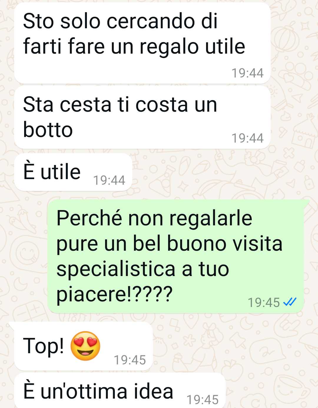 Proprio per questa immagine che ha di lei, il nostro amico ritiene che un buono per la farmacia non rappresenti il regalo più adatto. Nella sua percezione, la nonna è una donna ancora molto attiva e lontana dallo stereotipo della persona fragile o bisognosa di prodotti sanitari.