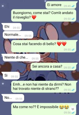 “Ciao a tutti. Mi chiamo Mauro e sono uno studente universitario. La sera lavoro come buttafuori nei locali per pagarmi gli studi. Anche se i miei sono sempre disposti a darmi una mano, sono sempre stato un ragazzo indipendente. So cucinare, pulire e mi gestisco tranquillamente lo studio e il lavoro. Quest’ anni ho preso un appartamento in condivisione con un altro ragazzo, per ammortizzare le spese dell’affitto che dopo il covid è salito alle stelle.. Come dicevo i miei sono disponibili ma non voglio pesare sui loro risparmi. Il problema è che il mio attuale coinquilino non sa comportarsi… ed è un amico di un amico, che strangolerò per avermelo presentato, prima o poi. La casa è in uno stato pietoso. Non pulisce nemmeno la sua roba, e mi sembra di vivere in un immondezaio da quando convivo con lui. Siccome il tipo in questione non riesce proprio a starci dietro ho preteso che pagasse di propria tasca qualcuno che faccia le pulizie al posto suo. Nelle chat che leggerete ha accettato, ma sono passati due giorni e non ho ancora visto movimenti in questa direzione… Ora denuncerò il fatto al proprietario di casa e vedremo. Non so quanto resisterò e se mi conviene cambiare appartamento, forse faccio prima e sprecherei meno energie. Questa è la nostra nuova conversazione di due giorni sul tema “quanto puzza ‘sta casa” e “quanto caga il tuo gatto”. Situazioni simili alla mia? Come avete risolto? Grazie per I feedback, tutto può essere utile”