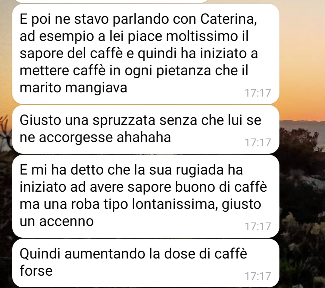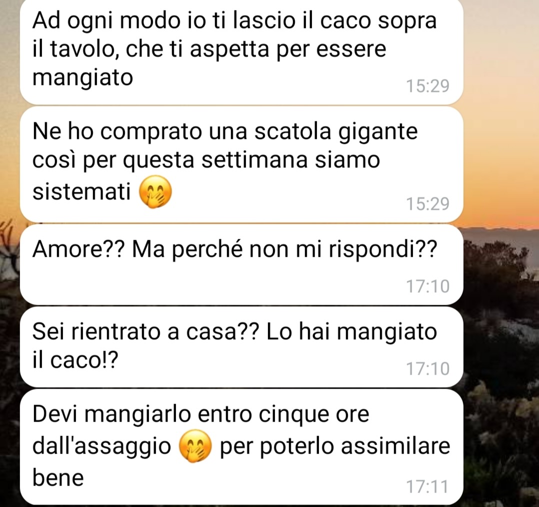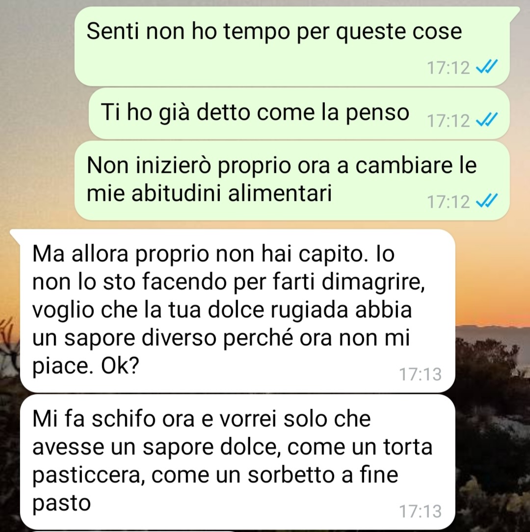 Walter spiega che la compagna gli ha prescritto di mangiare un caco al giorno, sostenendo che questa abitudine porterebbe benefici legati a un aspetto molto specifico e personale, che preferisce lasciare ai lettori il compito di interpretare. Pur ammettendo di essere scettico riguardo alla validità di tali affermazioni, Walter non nasconde la sua curiosità nel capire se dietro questa prescrizione ci sia qualche verità.