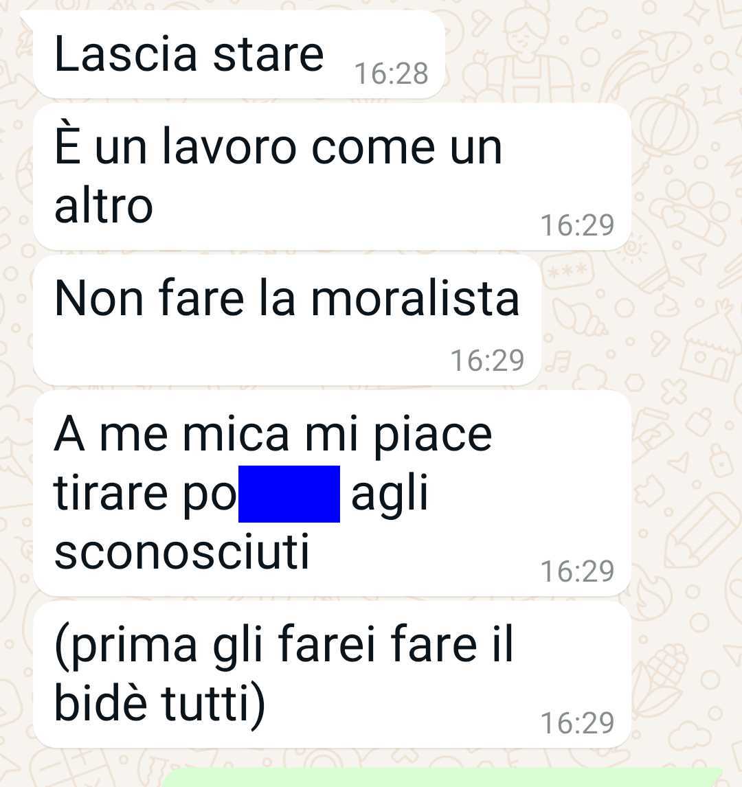 Il racconto si sposta poi sulla sua condizione personale. La nostra fan spiega di stare molto male economicamente. Vive in affitto insieme alla madre e le due lavorano facendo le pulizie presso diverse signore, organizzandosi come una piccola squadra. Si impegnano molto, lavorano duramente, ma i soldi non bastano mai. Racconta che negli ultimi anni il costo della vita è aumentato in modo insostenibile, con prezzi cresciuti di circa il 50% rispetto a pochi anni fa, rendendo impossibile anche solo immaginare una maggiore stabilità.