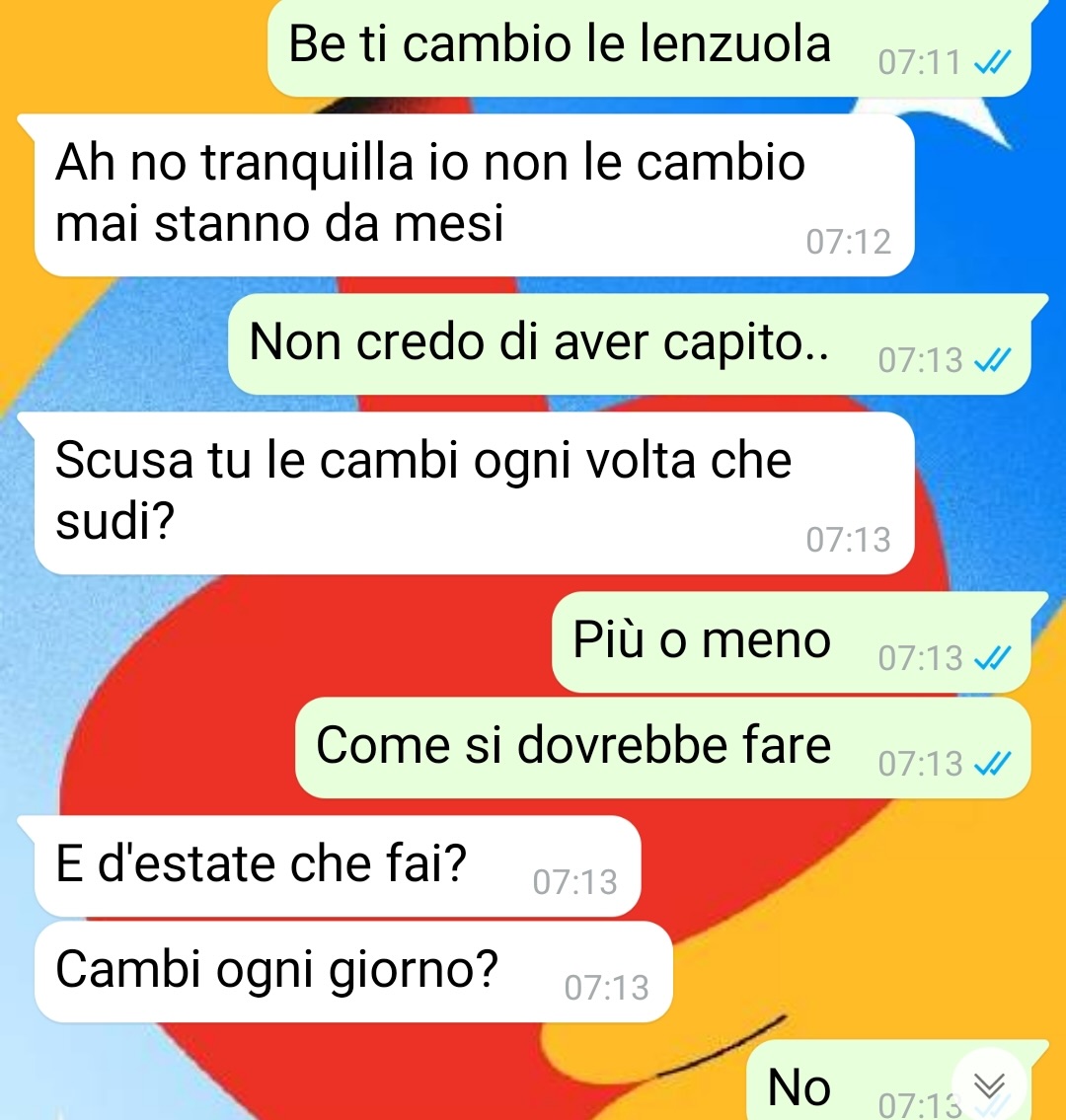 Sono Silvia e voglio parlarvi di Marcello. Io sono una ragazza comune e come, spero, tante altre persone sono una che è amante del pulito, dei servizi di casa e di vivere normalmente la propria vita senza abbrutirsi come delle bestie. Vivo sola ormai da un paio di anni e forse sarà la mia fobia per gli insetti, soprattutto quelli che iniziano con la s (scusate ho una fobia davvero brutta e mi fa senso anche solo scriverne il nome), quindi cerco in ogni modo di pulire e di avere una casa splendente. Non che la persona con cui sono stata me ne abbia fatto trovare qualcuno di quei cosi, ma poco ci mancava. Infatti dovete sapere che per un paio di mesi, e rimpiango di non essermi accorta prima del fattaccio, mi sono frequentata con Marcello, uno che anche lui è autonomo, se così possiamo dire, e vive in una casa sua nella quale dovrebbe fare i servizi di casa minimi. Sono stata da lui alcune volte, non sono una maniaca del pulito che nota la polvere poggiata sulle mensole perché penso sia normale, ma sapete, almeno pulire ogni tanto mi sembra il minimo. Una mattina mi sono trovata sola a casa sua perché lui doveva correre a lavorare e avevo dormito da lui. Quando mi sono alzata ho notato una cosa che non quadrava e l’ho subito contattato. La scoperta è stata sconvolgente e mi ha portata a una decisione drastica.
