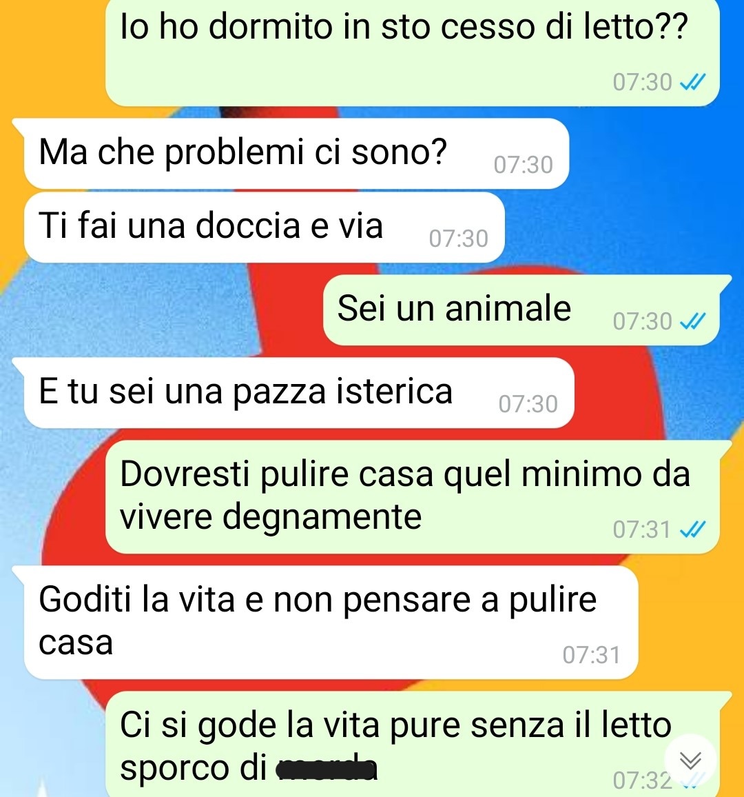 Silvia scrive che non avrebbe mai pensato di trovarsi in una situazione del genere, ma quella mattina è bastata a farle capire che non si sentiva più a suo agio. La reazione di Marcello — e la condizione in cui aveva trovato la casa — sono stati sufficienti per convincerla a chiudere ogni rapporto.