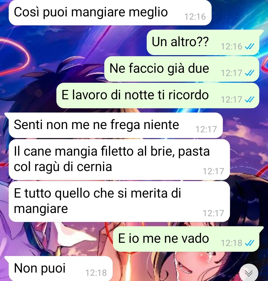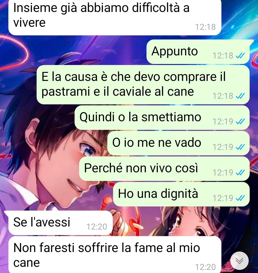 All’interno di questa situazione si inserisce anche la presenza del cane della compagna, di nome Artù. Secondo quanto riferisce il nostro follower, l’animale riceve molte attenzioni e un’alimentazione migliore rispetto alla sua. Questo aspetto ha generato un litigio tra lui e la sua compagna.