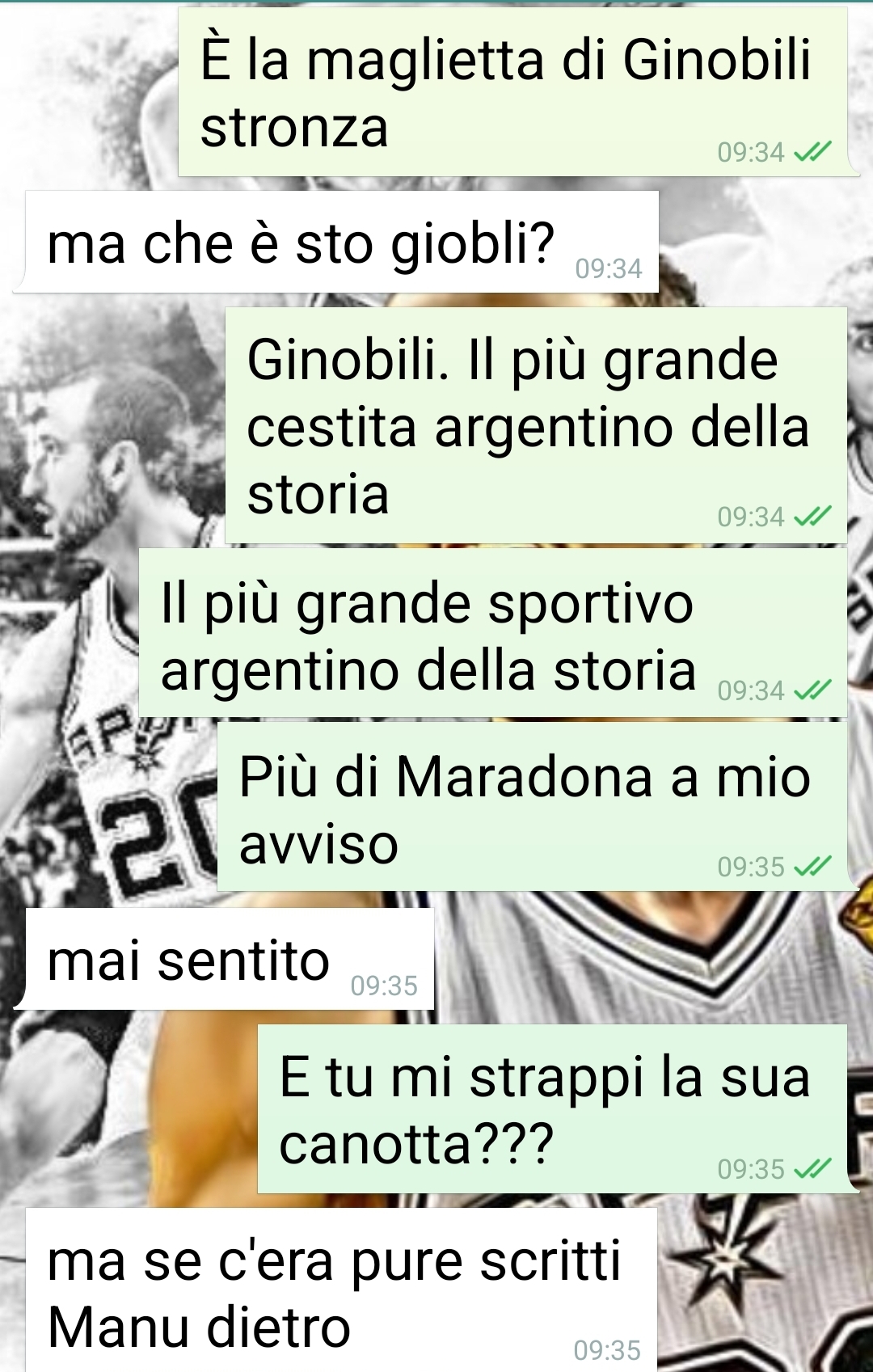 Il nostro amico spiega di essere un appassionato di basket, quasi un fanatico, come si definisce lui stesso senza vergogna. La sua “stella polare”, racconta, è Manu Ginobili, figura che considera un punto di riferimento assoluto. Nel 2007, durante un viaggio a Washington, aveva acquistato una canotta legata al suo idolo e conserva persino una foto scattata di sfuggita mentre il campione rientrava negli spogliatoi. Per lui quell’oggetto non è solo un capo d’abbigliamento, ma un ricordo prezioso e carico di significato personale.