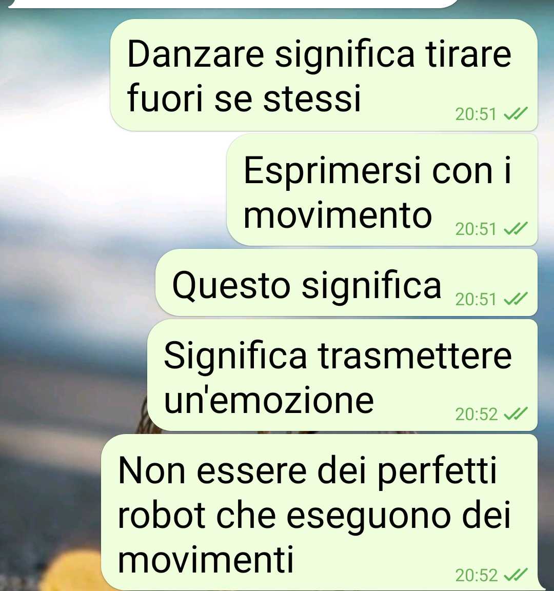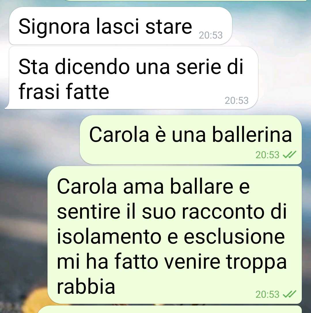 La danza di Carola è presentata come un’arte che va ben oltre la semplice esecuzione di passi: è una manifestazione di forza, espressività e originalità. La sua performance è descritta come “originale, furiosa” in alcuni momenti, e in altri “confusa come una farfalla”, un parallelo poetico che sottolinea come la danza di Carola rifletta la complessità e il caos della vita stessa, dove non esistono percorsi lineari o predeterminati da seguire. Questa capacità di Carola di trasformare i suoi movimenti in un riflesso delle emozioni umane, alternando intensità e dolcezza a seconda delle sue ispirazioni, la qualifica senza dubbio come ballerina.