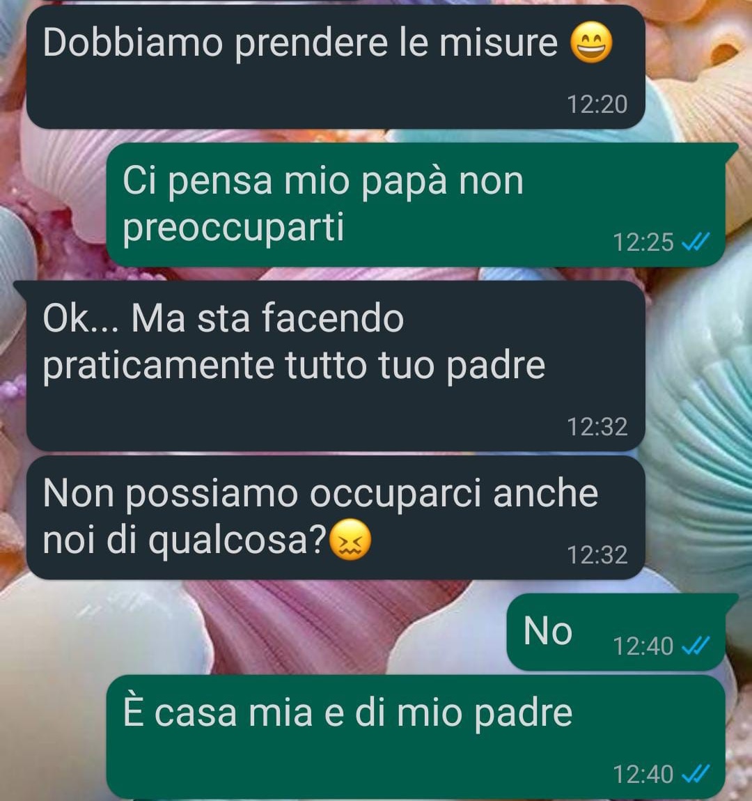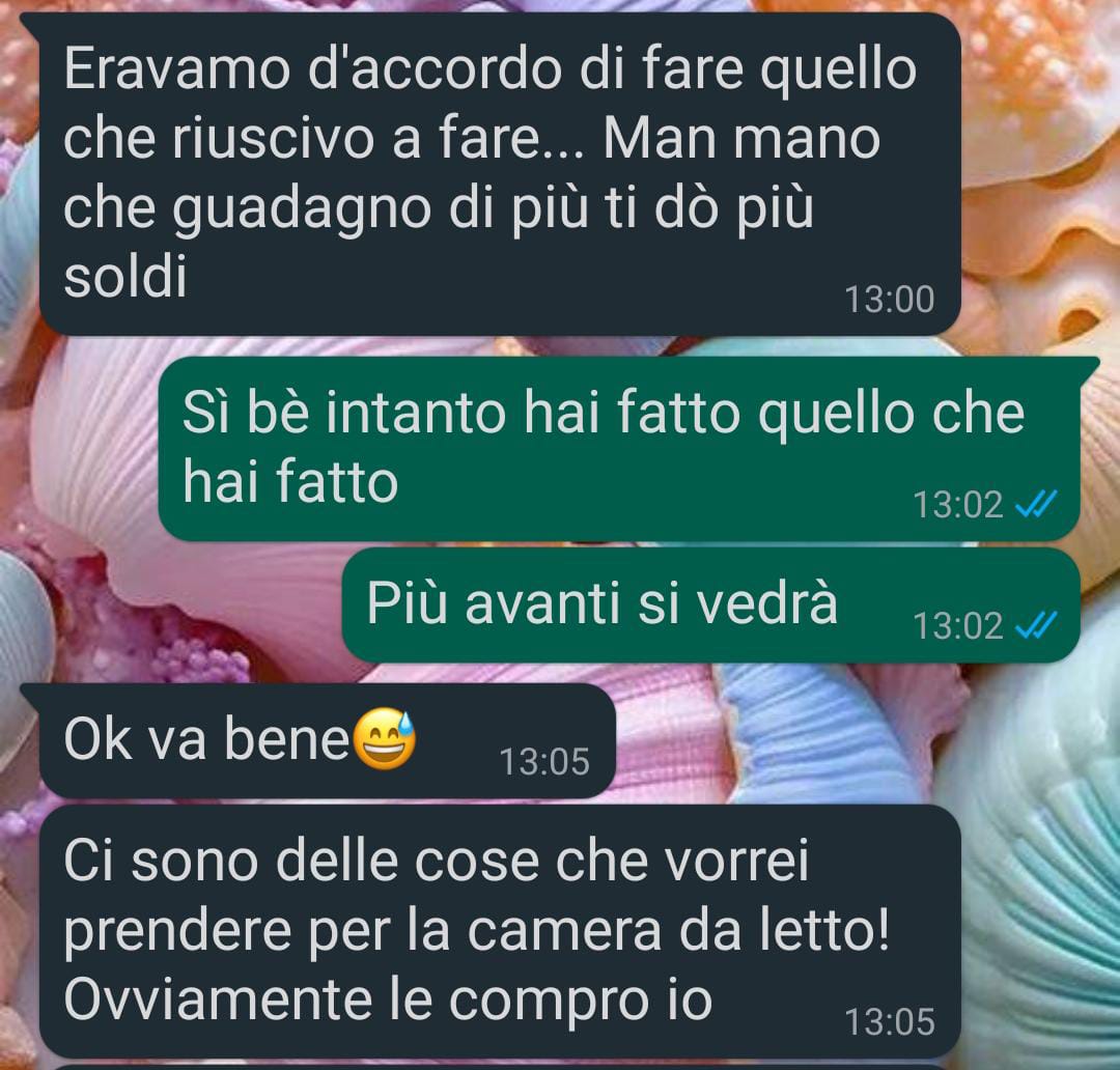 Non posso credere a quello che è successo! Io e il mio fidanzato dobbiamo – dovevamo? – sposarci. Stiamo insieme da quattro anni, e volevamo andare a vivere assieme. Io però non posso andare a convivere senza essere sposata. I miei non me lo permetterebbero, e giustamente dico anche!Così abbiamo organizzato il matrimonio. La casa c’è già, l’ho acquistata io, con l’aiuto di mio papà, tre anni fa. Fino ad ora è stata vuota, perché di andare da sola non me la sentivo e di convivere come dicevo non se ne parla proprio. Mio papà mi ha aiutato ad arredarla, a fare i lavori, a ridipingerla, a scegliere i mobili e sistemarla. Ci ha dedicato tanto tempo e tanta cura, mentre il mio fidanzato non tanto. Non che non si sia offerto, ma preferivo se ne occupasse mio padre, perché lui sa come voglio che siano fatte le cose.Ora, ammetto forse di aver esagerato un pochino, ma capitemi: stiamo andando a vivere in una casa pagata con i soldi miei e di mio padre, il mio fidanzato può contribuire al momento solo con le spese e con l’arredo, perché ancora sta facendo gavetta sul lavoro e non può dare di più. Dovevo fare in modo di tutelarmi? Non potevo mica permettermi un uomo che si adagiasse sugli allori solo per il fatto che sono più benestante. Adesso non mi sta rispondendo! Ci credete che immaturo che è?