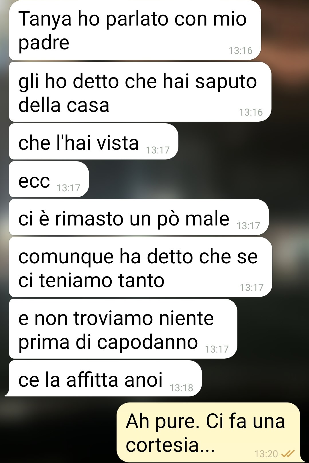 L’appartamento in questione appartiene proprio ai genitori di Riccardo. Scioccata e imbarazzata, Tanya scrive immediatamente al suo compagno per avere spiegazioni, mentre l’agente immobiliare è ancora lì con lei, visibilmente a disagio. Tanya invita a leggere la conversazione avuta con Riccardo per comprendere la situazione e il motivo per cui considera l’intera vicenda una vergogna e uno squallore.