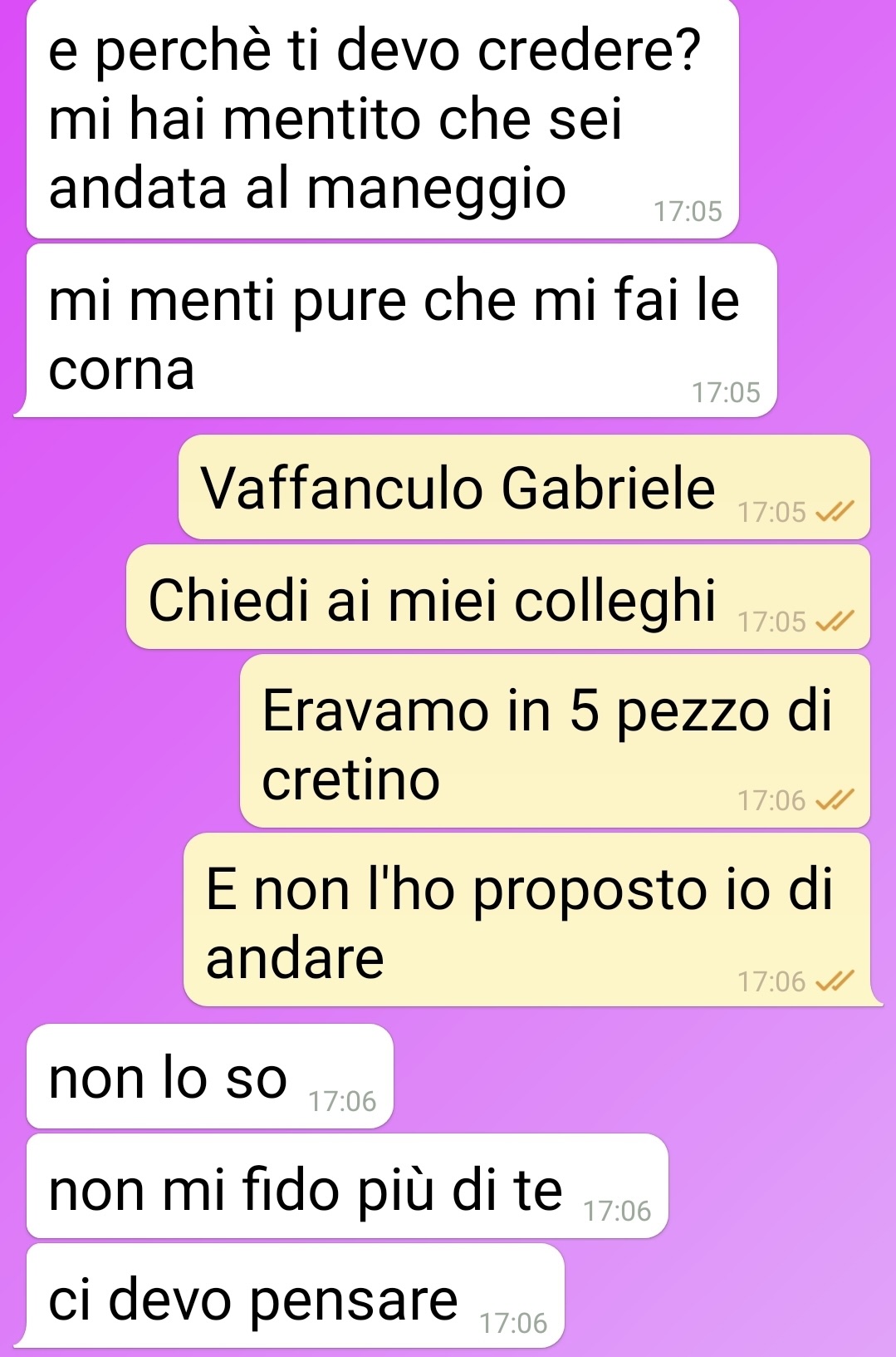Invece, secondo il suo racconto, il compagno si è mostrato estremamente arrabbiato. Con il passare della discussione, è emerso che Gabriele aveva interpretato quell’episodio come un possibile tradimento. Un’accusa che ha lasciato la nostra fan sorpresa e amareggiata, soprattutto perché nata da una situazione che lei descrive come innocua e condivisa con più persone in un contesto lavorativo.