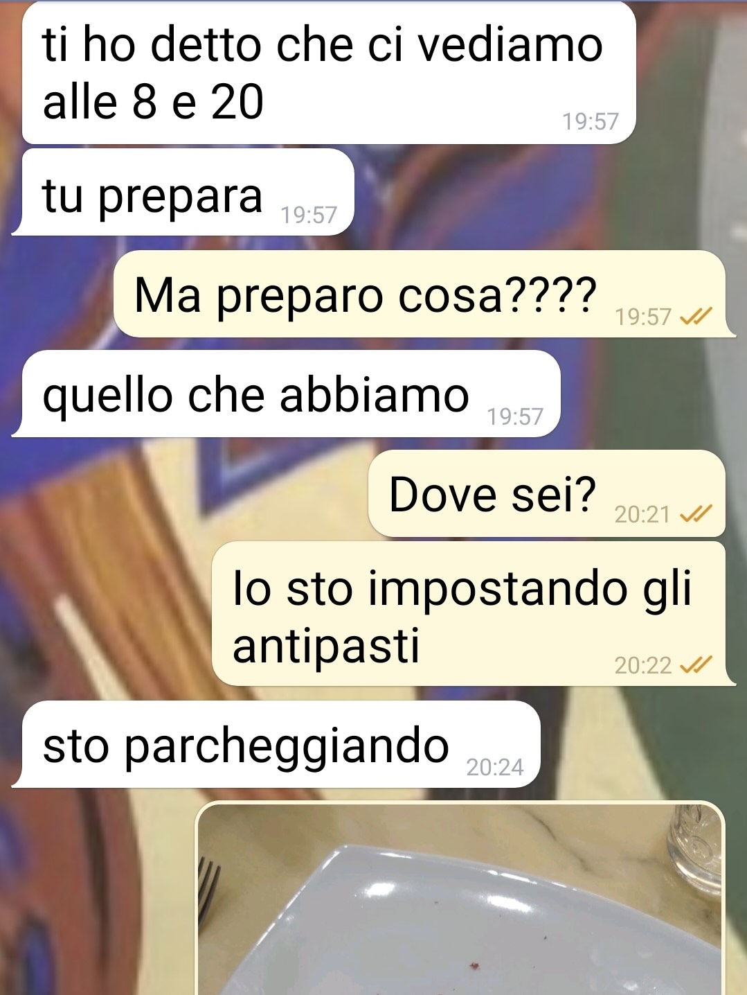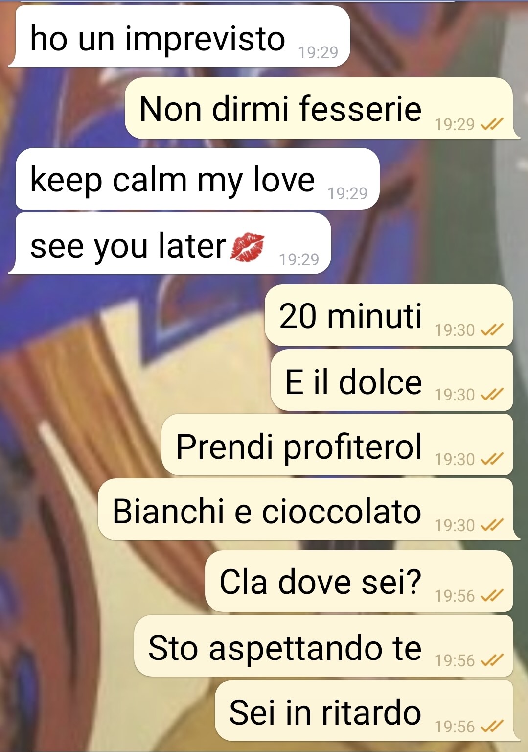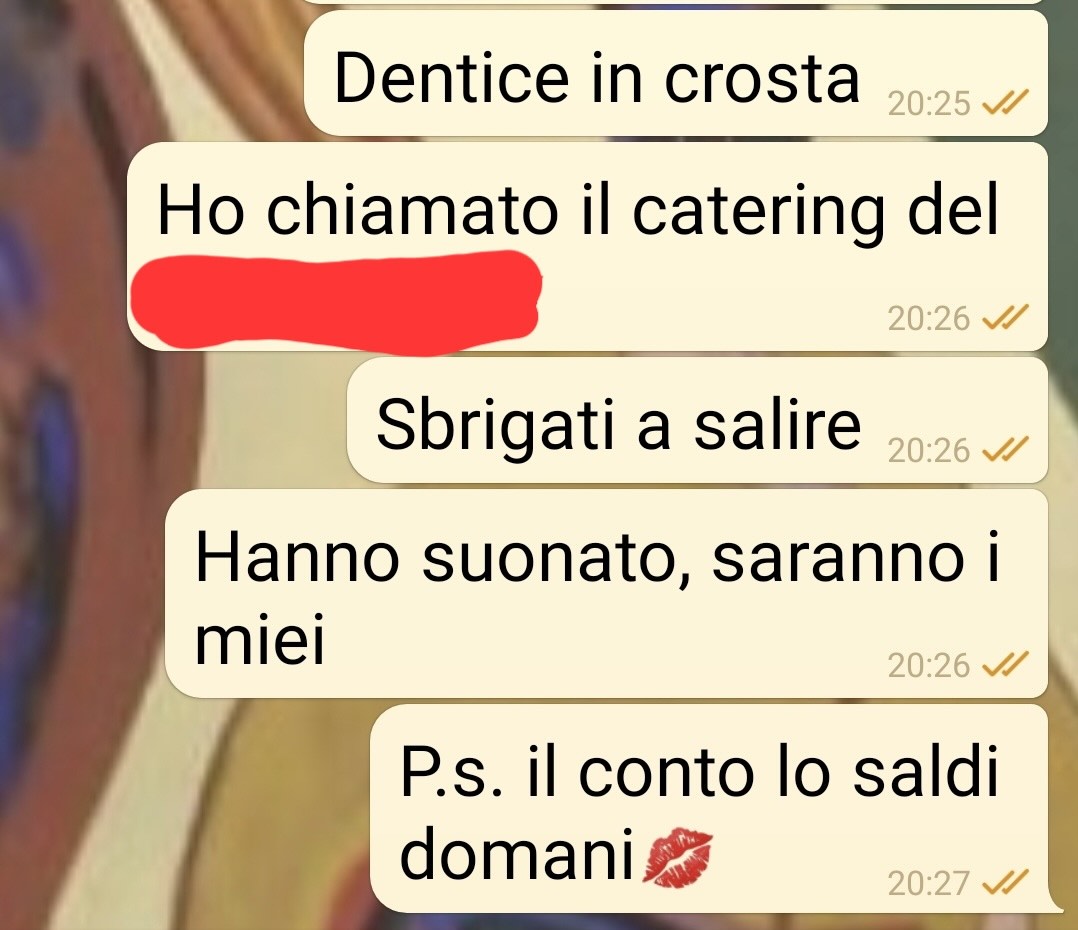 Sorpresa e contrariata, gli ha scritto subito per capire cosa avesse combinato. La conversazione che ne è seguita mostra, a suo dire, tutta la tirchieria di Claudio e la sua resistenza a spendere per qualcosa che lei ritiene importante. La situazione ha preso una piega tale da costringerla, alla fine, a usare “maniere drastiche” per risolvere il problema e assicurarsi che la cena fosse all’altezza dell’occasione.