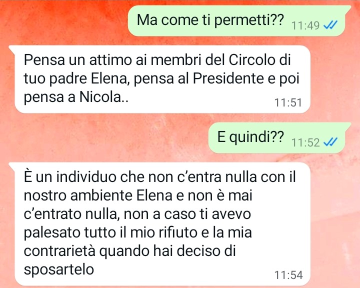 Elena racconta di provenire da un ambiente particolarmente agiato, dove il denaro non manca e dove ogni occasione sociale diventa una vetrina per ostentare status, raffinatezza ed esclusività. Una cerchia ristretta, quella frequentata dai suoi genitori, in cui chi non fa parte del gruppo viene automaticamente considerato inferiore, quasi invisibile. Questo atteggiamento, profondamente elitario, permea ogni aspetto della vita familiare.