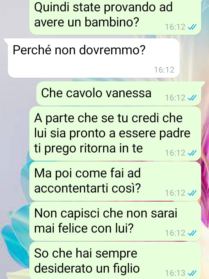 La nostra fan, vedendola scossa e convinta della decisione di chiudere quella relazione, le aveva promesso che, appena tornata dalle due settimane di vacanza, l’avrebbe contattata subito per vederla e parlarne con calma. Così ha fatto: al rientro ha immediatamente scritto a Vanessa, aspettandosi di trovare una situazione cambiata.