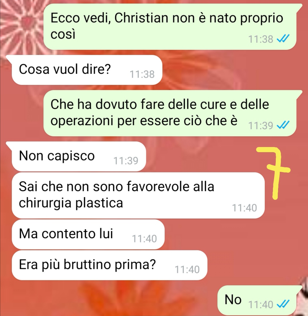 La nostra fan Giulia ha quasi 21 anni e nelle ultime settimane ha vissuto qualcosa di molto intenso: si è innamorata di Christian, una persona che descrive come semplicemente perfetta. Racconta di non aver mai conosciuto qualcuno che la facesse sentire così bene. Christian è, a suo dire, bello, gentile, attento e premuroso. Tanto che, dopo poco tempo insieme, non riesce nemmeno a trovare un difetto nel suo modo di essere.