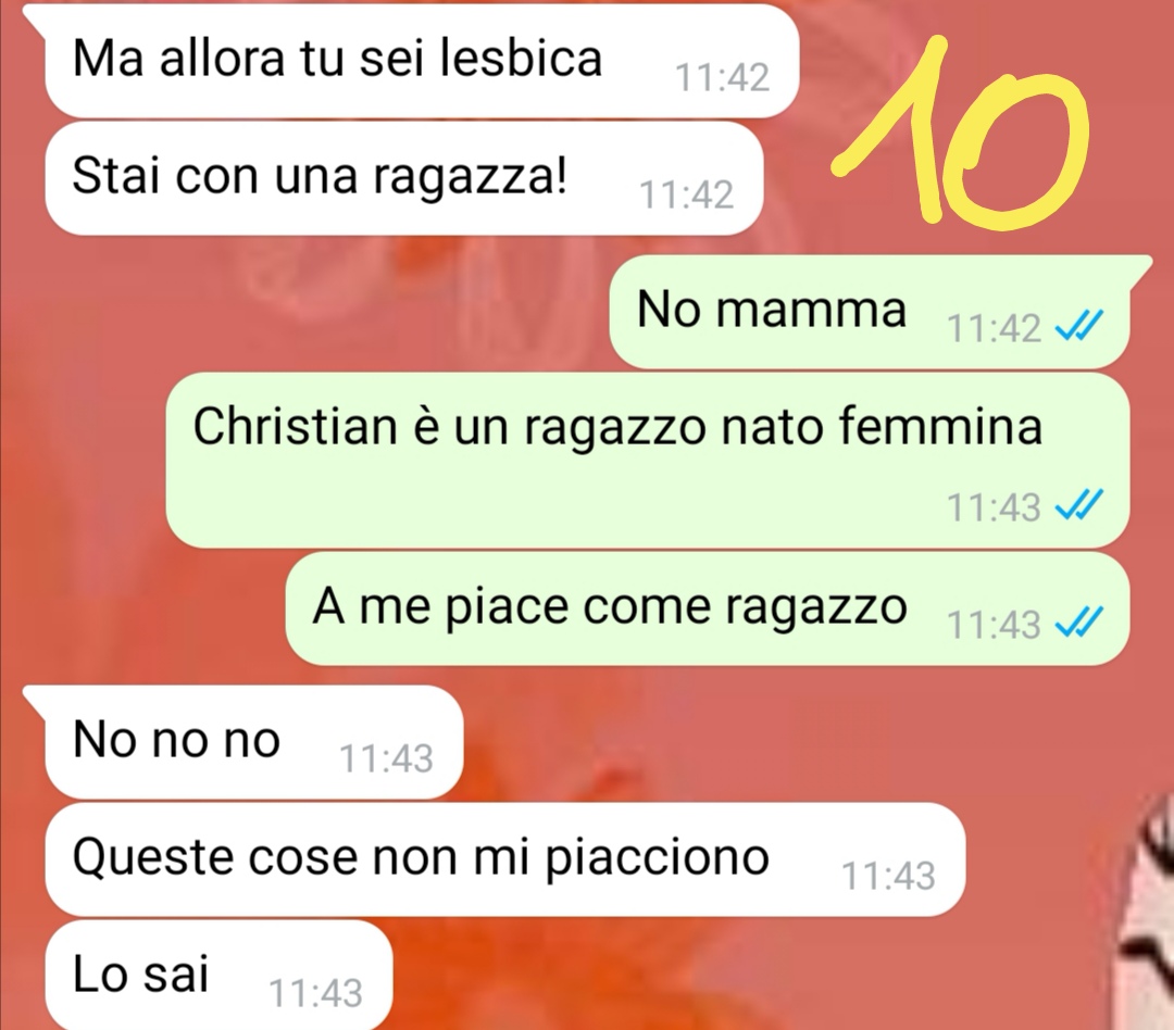 Durante la cena, tutto sembra andare benissimo: tra Christian e sua madre si crea subito un bel clima, sereno e cordiale. Una volta tornata a casa, il giorno seguente, Giulia scrive alla madre per chiederle un parere più dettagliato sull’impressione ricevuta. È proprio dopo aver letto la risposta della madre che sente sia arrivato il momento di raccontarle qualcosa in più.