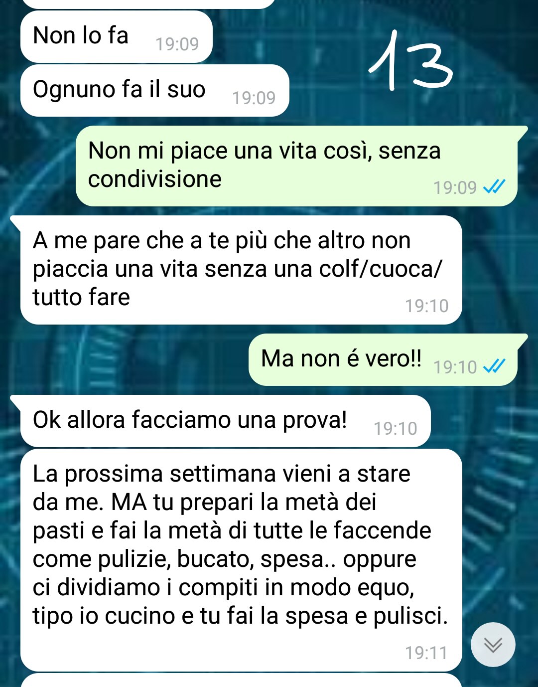 Massimiliano ha deciso di condividere la chat che ne è seguita per mostrare come la situazione si sia evoluta, evidenziando il divario tra le sue aspettative e la reale disponibilità della sua compagna.