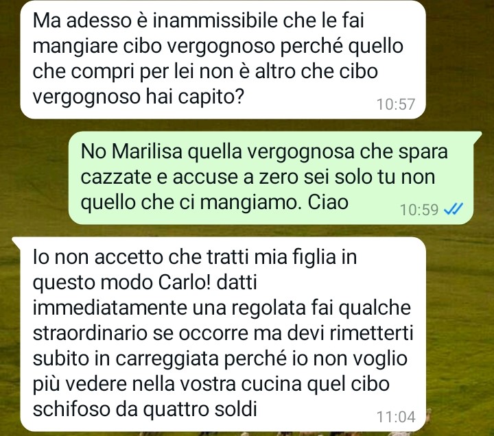 Nel suo racconto emerge un uomo che percepisce l’ingerenza come un’invasione dello spazio coniugale e che fatica a mantenere la calma quando si sente messo in discussione. La chat che ha scelto di condividere documenta uno degli ultimi episodi di questa tensione costante tra genero e suocera.