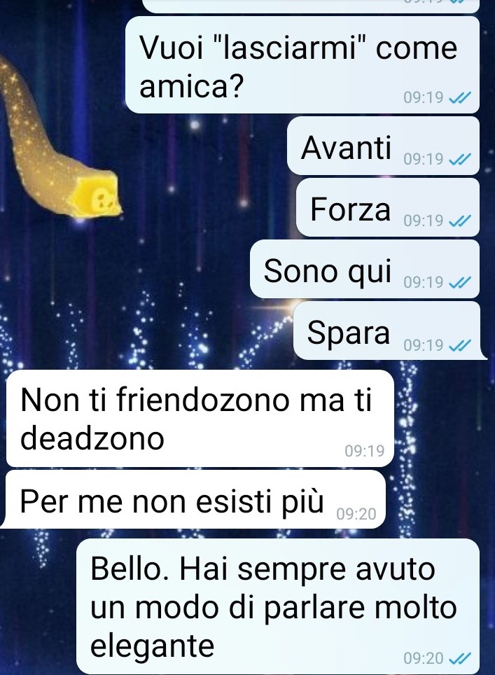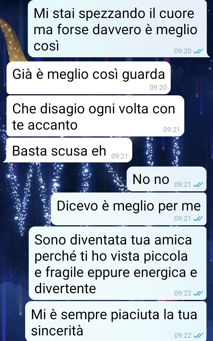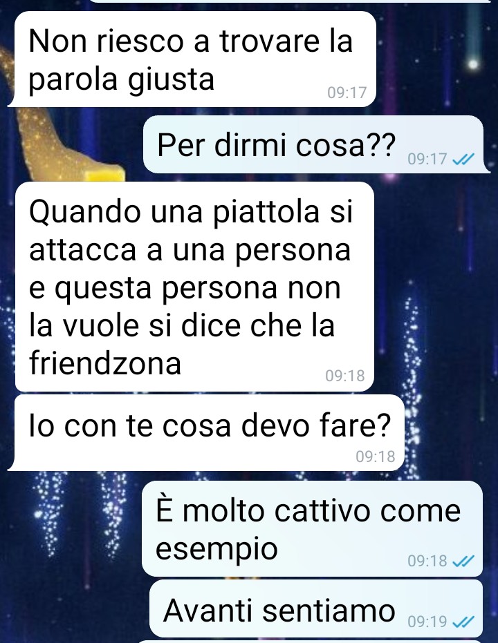 Dall’altra parte c’è la sua “amica”, una persona che vive in un mondo completamente diverso: privilegiato, comodo, pieno di possibilità. Una dimensione in cui tutto sembra facile, dove ogni difficoltà ha una soluzione immediata, dove anche il superfluo viene dato per scontato. È in questo contesto che nasce il conflitto. Tutto parte da un semplice invito a un aperitivo, a cui la nostra follower è costretta a dire di no, come capita spesso.