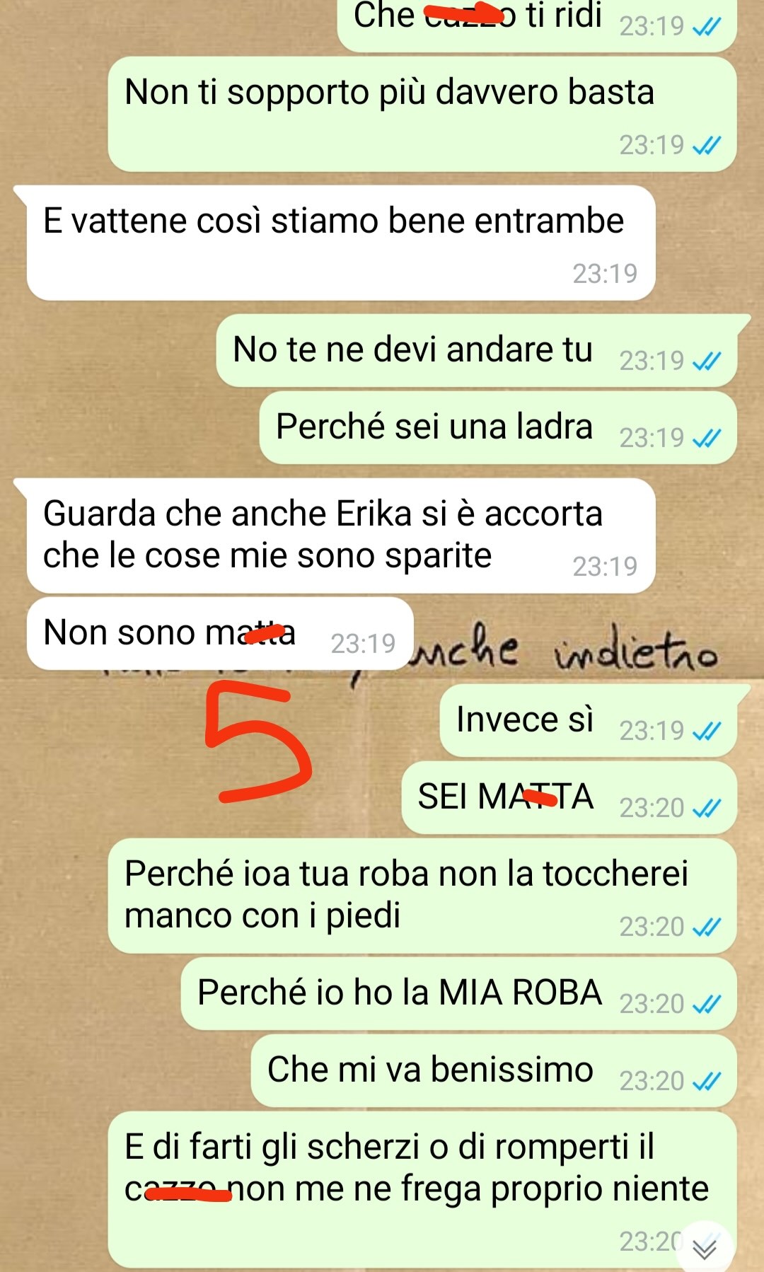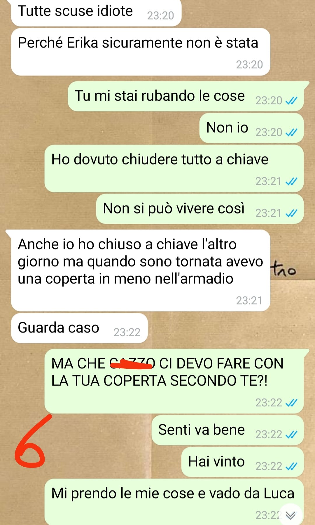 Arianna ha iniziato a notare la sparizione di alcuni suoi oggetti personali: vestiti, biancheria intima, carta igienica, lenzuola, smalti, e altri effetti. Tutto sembrava svanire nel nulla da un giorno all’altro. Dal momento che Erika era spesso fuori casa, Arianna ha sospettato subito di Carmela. Ma la situazione si è complicata ulteriormente quando, a sua volta, Carmela ha cominciato ad accusarla di rubare le sue cose.