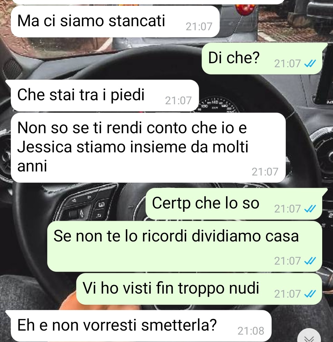 Nel corso degli anni, diversi coinquilini si sono avvicendati nell’appartamento. I “veterani”, oltre a lui, sono Valerio e Jessica. Valerio è arrivato poco dopo di lui, e tra i due è nata una forte amicizia. Jessica, invece, si è unita alla convivenza cinque anni fa, quando ha iniziato una relazione stabile con Valerio, e da allora hanno vissuto tutti insieme.