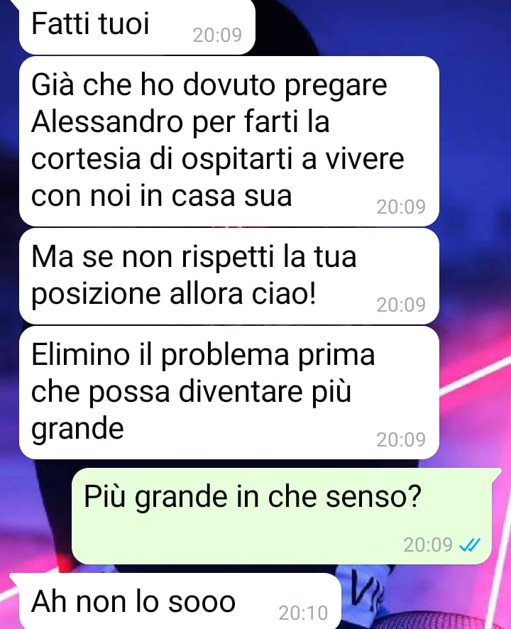 Nel suo racconto l’amica si domanda quando, a suo avviso, le sorelle abbiano smesso di sostenersi nei momenti di bisogno. Scrive che, leggendo le conversazioni che cita, secondo lei emerge come il problema sia inesistente e come la reazione della sorella non tenga conto della sua situazione personale. La nostra fan definisce il comportamento della sorella un atto egoista rispetto alle circostanze che sta vivendo. Conclude il resoconto ribadendo di non comprendere la decisione della sorella di voltarle le spalle per quella che continua a ritenere una questione priva di reale fondamento.