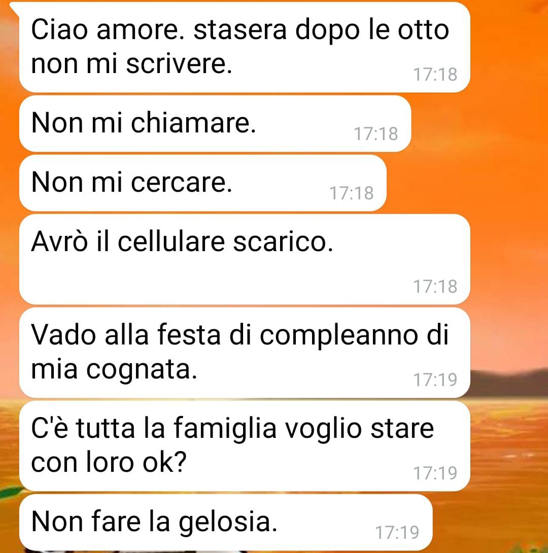 Non me ne sono accorta subito. All’inizio aveva camuffato bene le sue intenzioni, come vi dicevo, con il tempo ha iniziato ad essere scostante, ad accusarmi di stargli troppo addosso se gli facevo una qualsiasi domanda, a stressarsi se chiedevo un po’ di attenzioni.