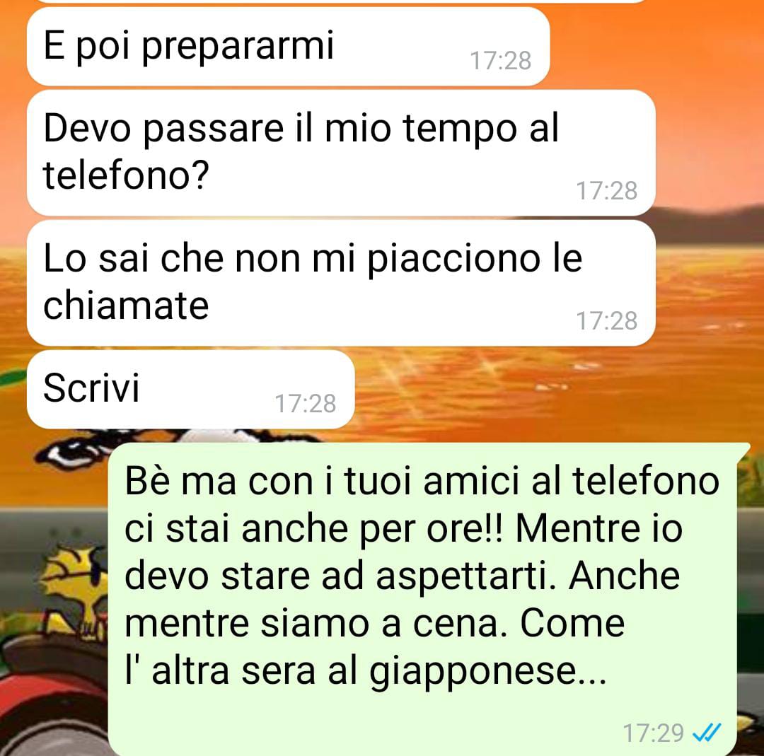 Prima di conoscere Alessandro ero una ragazza indipendente, e con un’autostima abbastanza forte. Ovviamente anche io come tutti ho le mie insicurezze eh, ma mai così tante come quando sono stata con lui. Mi criticava sempre, in modo velato, facendomi passare le critiche come suggerimenti, o volermi aiutare, ma in realtà era solo un modo per farmi sentire più insicura.