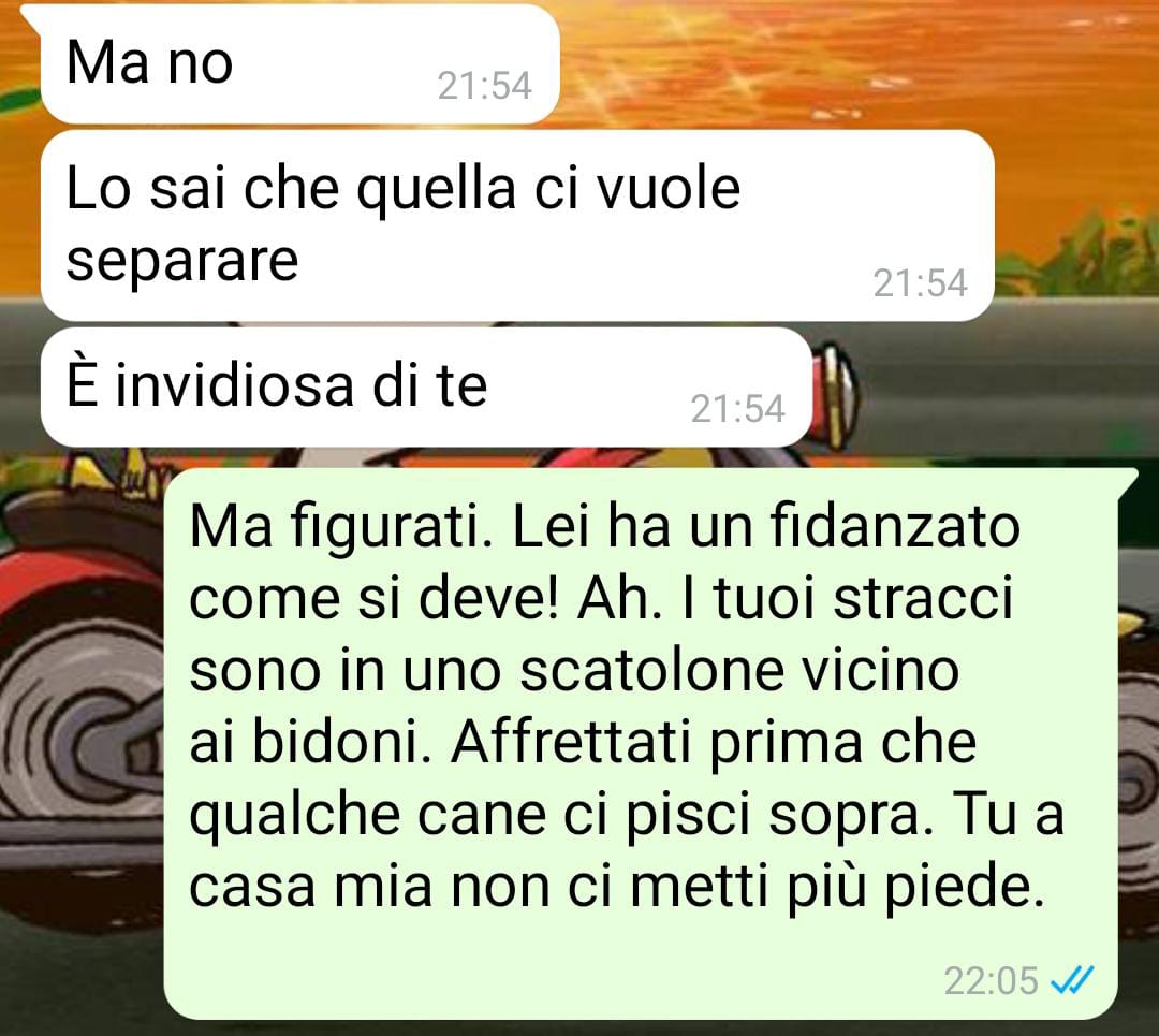 In realtà, come la lettrice ha successivamente scoperto, Alessandro utilizzava il suo appartamento in zona centrale semplicemente come base d’appoggio per i suoi affari, evitando di dover tornare a casa dei genitori in periferia. Inizialmente l’amico aveva saputo nascondere bene le sue vere intenzioni, ma con il tempo è diventato sempre più scostante e irritabile. Accusava la nostra fan di stargli troppo addosso quando lei gli poneva qualsiasi domanda e mostrava fastidio se lei richiedeva attenzioni. La situazione era degenerata al punto che Alessandro si comportava come un ospite di cui però doveva occuparsi lei: cucinare, lavare i vestiti e fare la spesa erano diventate sue responsabilità. La follower stava già considerando di porre fine a questa situazione insostenibile quando Alessandro le ha offerto l’occasione perfetta per farlo.