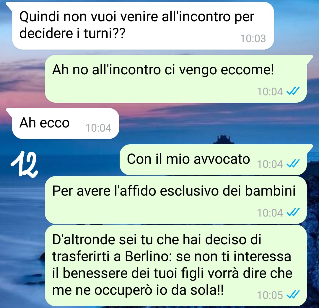 Il divorzio ha portato dei cambiamenti positivi nella dinamica familiare: ha reso Eugenio meno egoista obbligandolo a essere davvero padre, mentre ha dato alla nostra fan un minimo di respiro che non aveva più tra lavoro e maternità. Tutto sembrava procedere per il meglio fino alla settimana scorsa, quando l’ex marito ha comunicato improvvisamente alla follower che si sarebbe trasferito in Germania. Sebbene non possa opporsi a questa decisione, la notizia non l’ha fatta piacere perché ha subito immaginato di dover tornare a occuparsi al cento per cento dei bambini. Alcuni giorni dopo questo annuncio, Eugenio ha scritto alla nostra amica, lasciando presagire ulteriori sviluppi nella situazione.