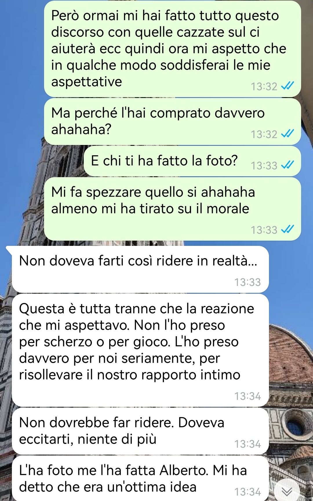 Negli ultimi tempi, le tensioni interne alla coppia si sono concentrate anche sulla sfera intima. La nostra amica precisa che la loro relazione non è caratterizzata da voglia di sperimentare a ogni costo o da insoddisfazione cronica della routine. Tuttavia, crede che, di tanto in tanto, sarebbe utile esplorare soluzioni diverse affinché il rapporto mantenga vivacità e fiorisca in modi nuovi. Proprio quando ha cercato di proporre piccoli cambiamenti o novità, Carlo ha reagito con resistenza: la definisce “troppo chiusa” e “eccessivamente provinciale” nella mentalità, un atteggiamento che ferisce profondamente la nostra fan.